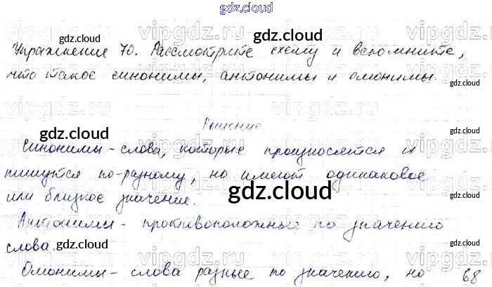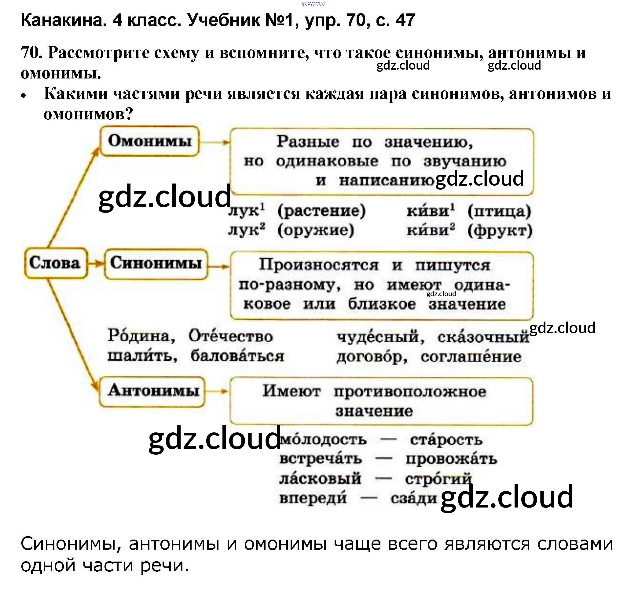Ответ на задание 70 Учебник Русский язык за 4 (четвертый) класс Канакина, Горецкий Школа России 2015 Часть 1, 2