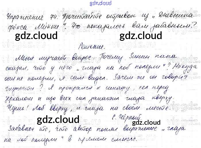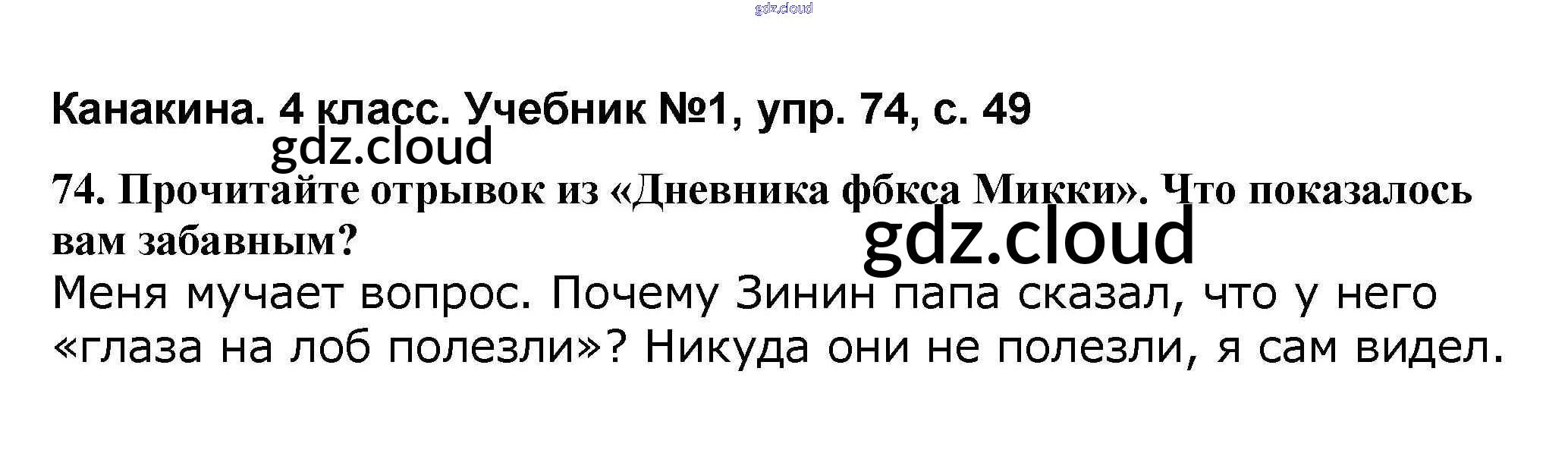 Ответ на задание 74 Учебник Русский язык за 4 (четвертый) класс Канакина, Горецкий Школа России 2015 Часть 1, 2