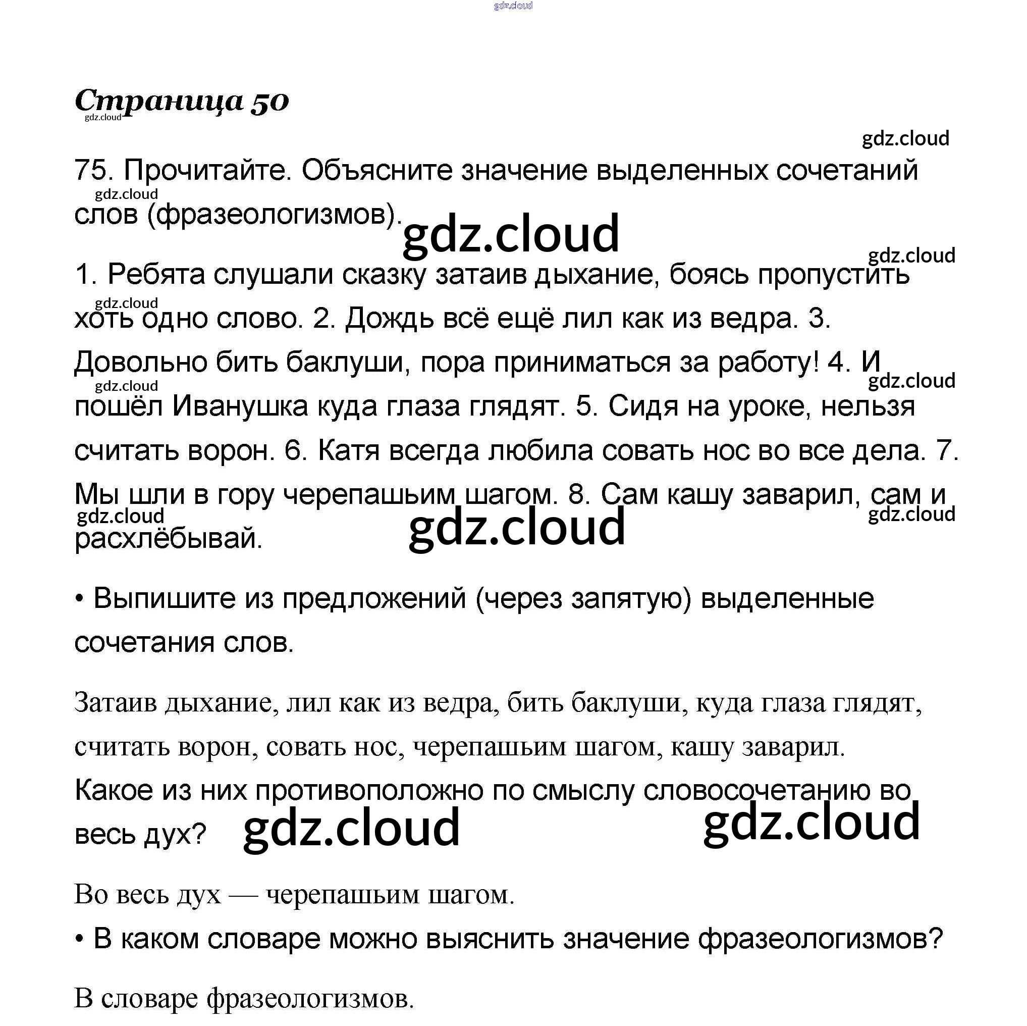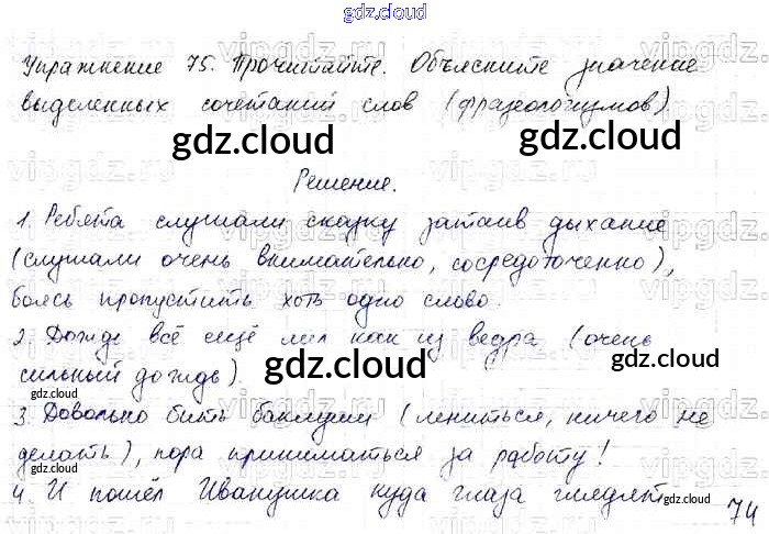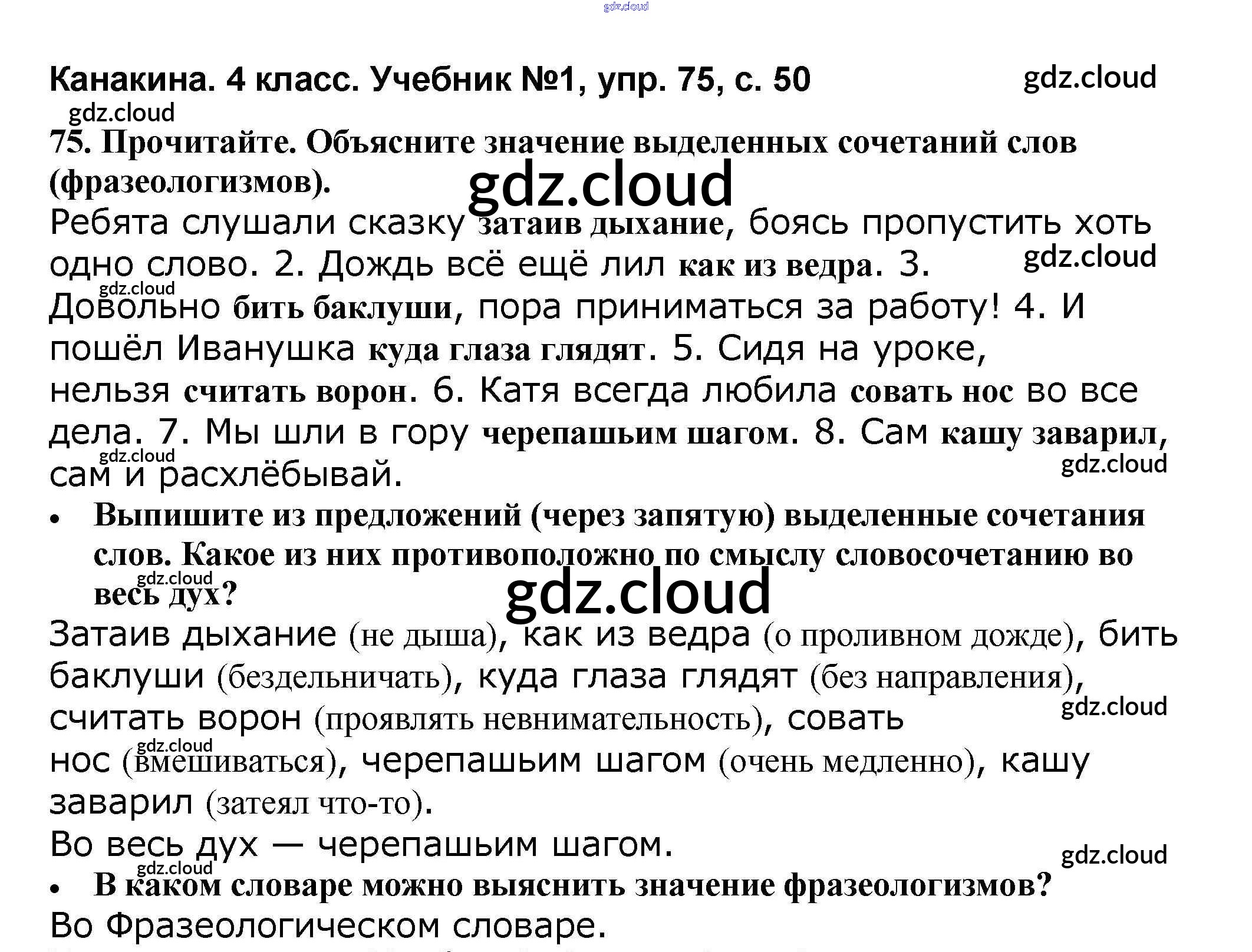 Ответ на задание 75 Учебник Русский язык за 4 (четвертый) класс Канакина, Горецкий Школа России 2015 Часть 1, 2