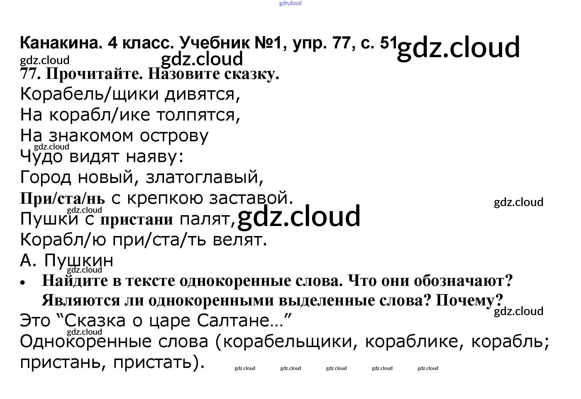 Ответ на задание 77 Учебник Русский язык за 4 (четвертый) класс Канакина, Горецкий Школа России 2015 Часть 1, 2