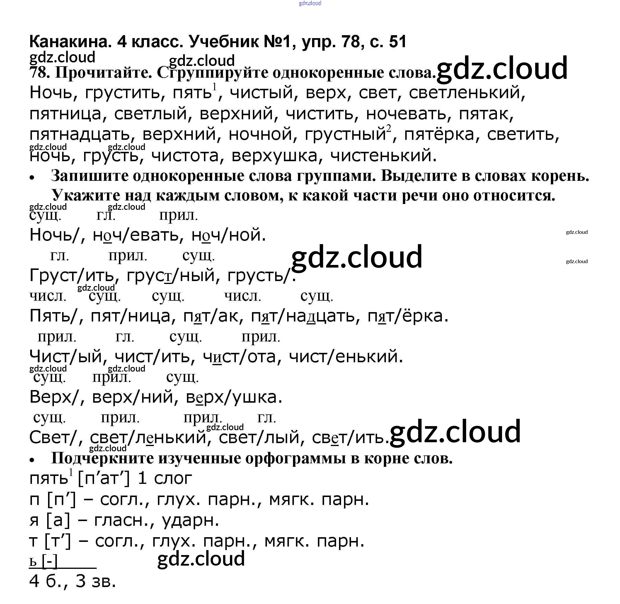 Ответ на задание 78 Учебник Русский язык за 4 (четвертый) класс Канакина, Горецкий Школа России 2015 Часть 1, 2