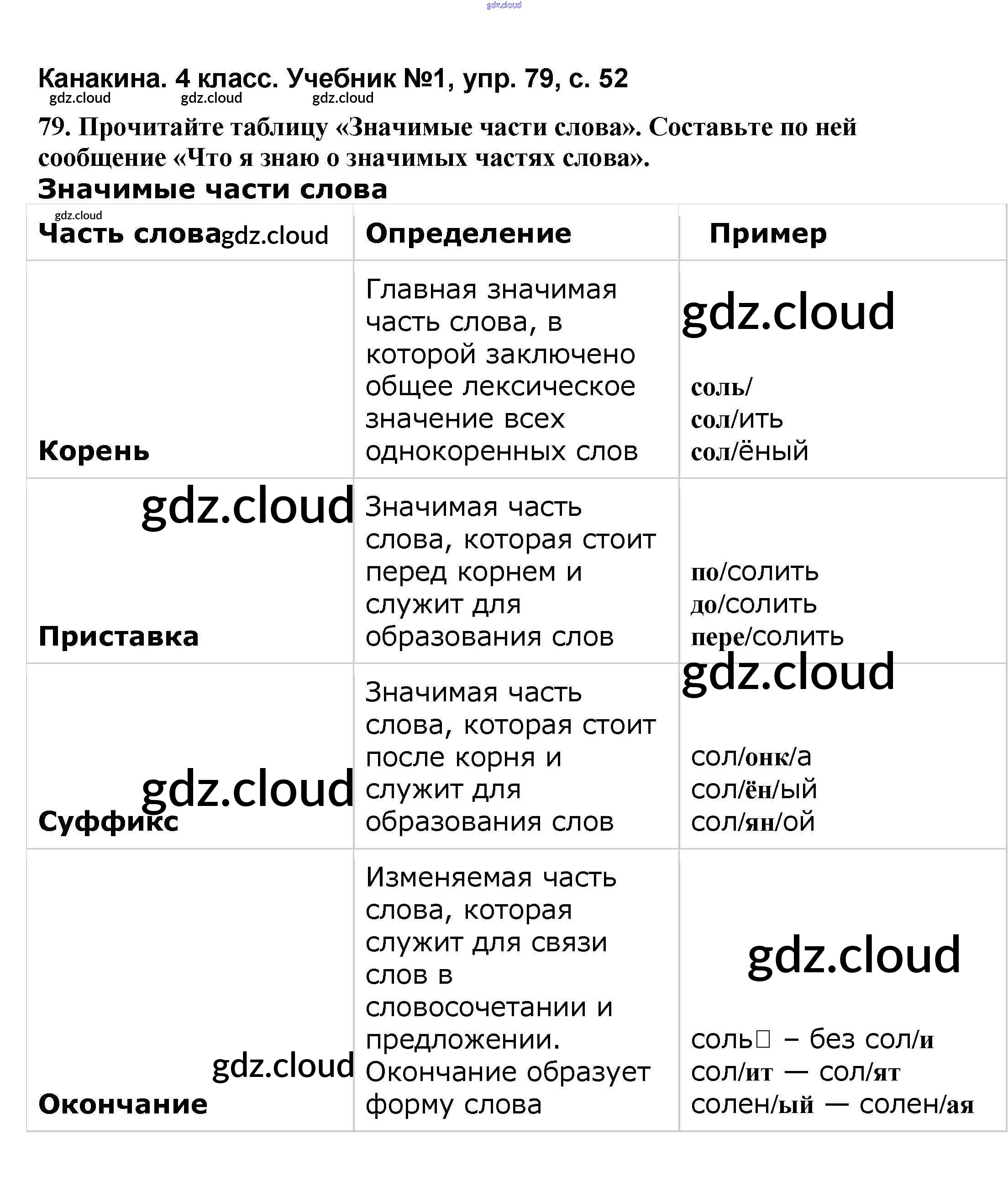 Ответ на задание 79 Учебник Русский язык за 4 (четвертый) класс Канакина, Горецкий Школа России 2015 Часть 1, 2