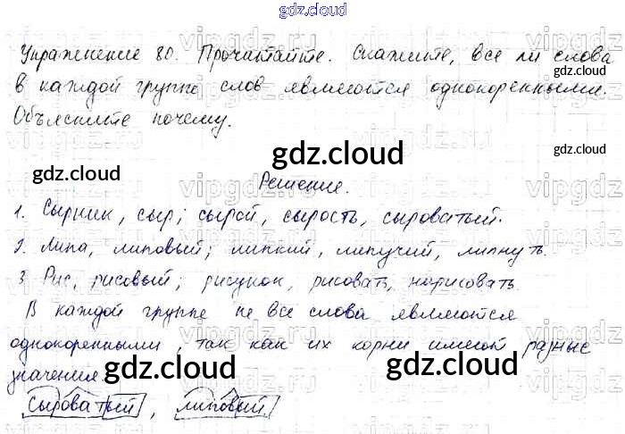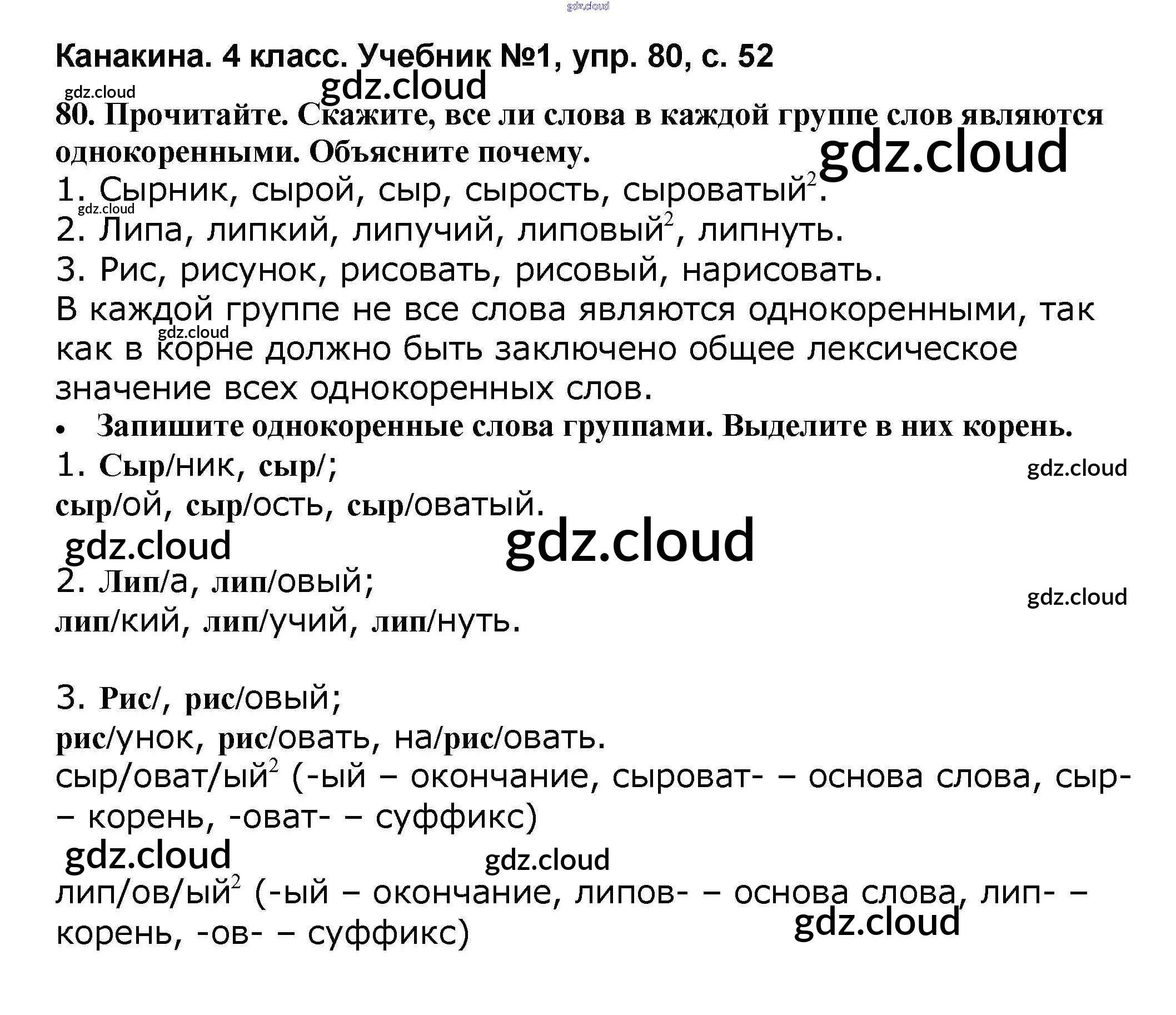 Ответ на задание 80 Учебник Русский язык за 4 (четвертый) класс Канакина, Горецкий Школа России 2015 Часть 1, 2