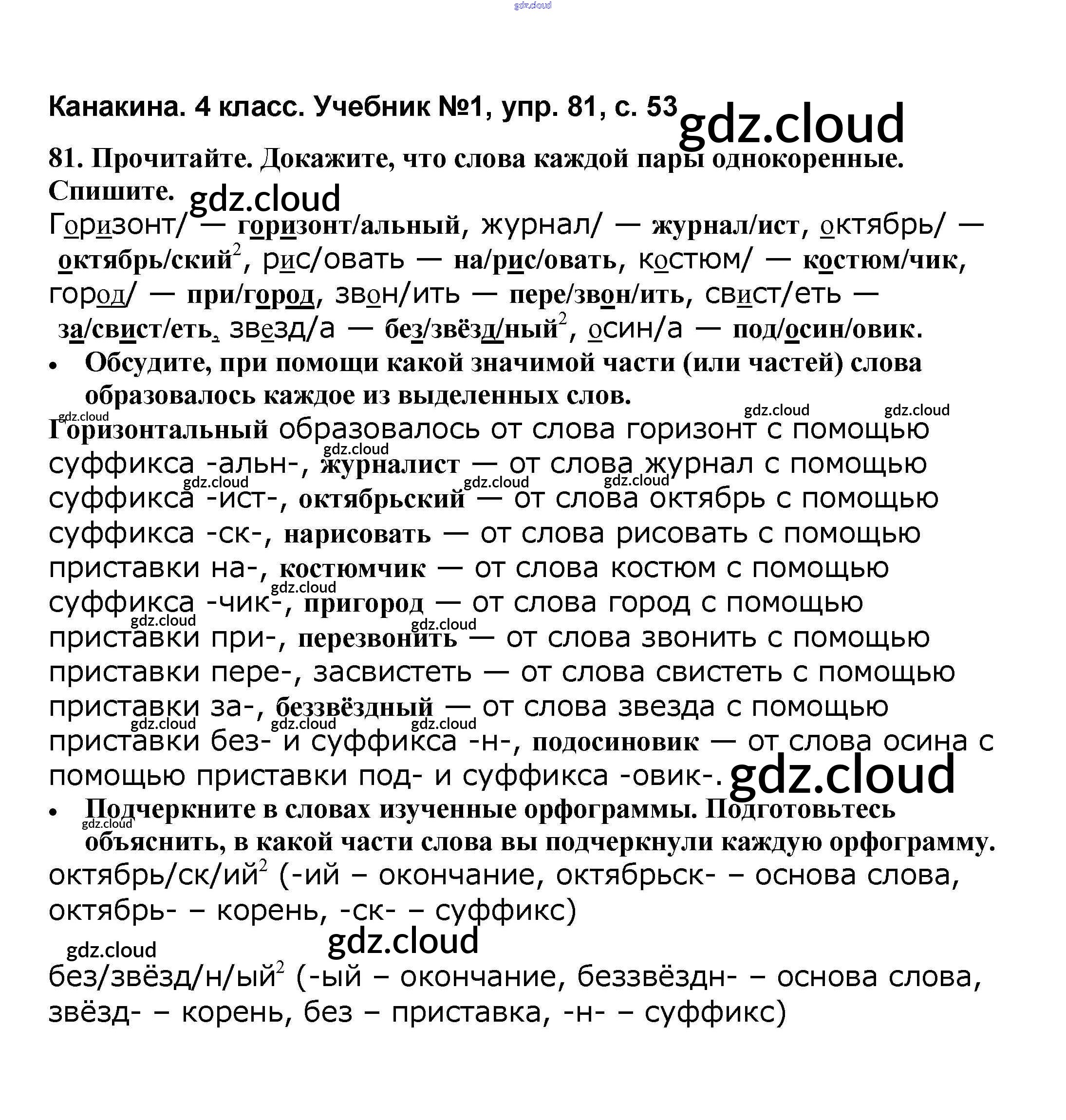 Ответ на задание 81 Учебник Русский язык за 4 (четвертый) класс Канакина, Горецкий Школа России 2015 Часть 1, 2