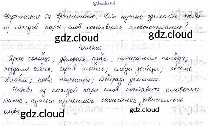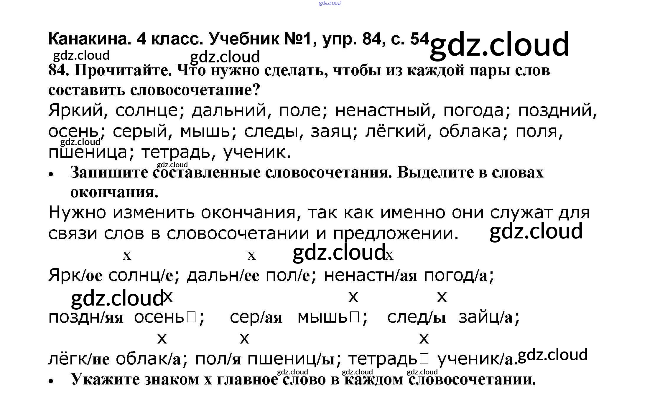 Ответ на задание 84 Учебник Русский язык за 4 (четвертый) класс Канакина, Горецкий Школа России 2015 Часть 1, 2