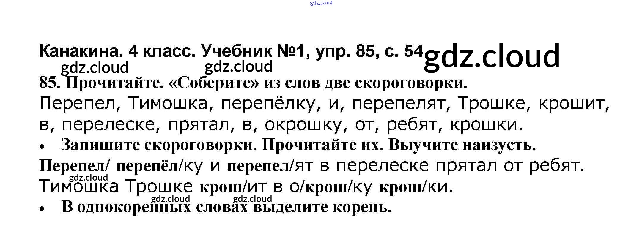 Ответ на задание 85 Учебник Русский язык за 4 (четвертый) класс Канакина, Горецкий Школа России 2015 Часть 1, 2
