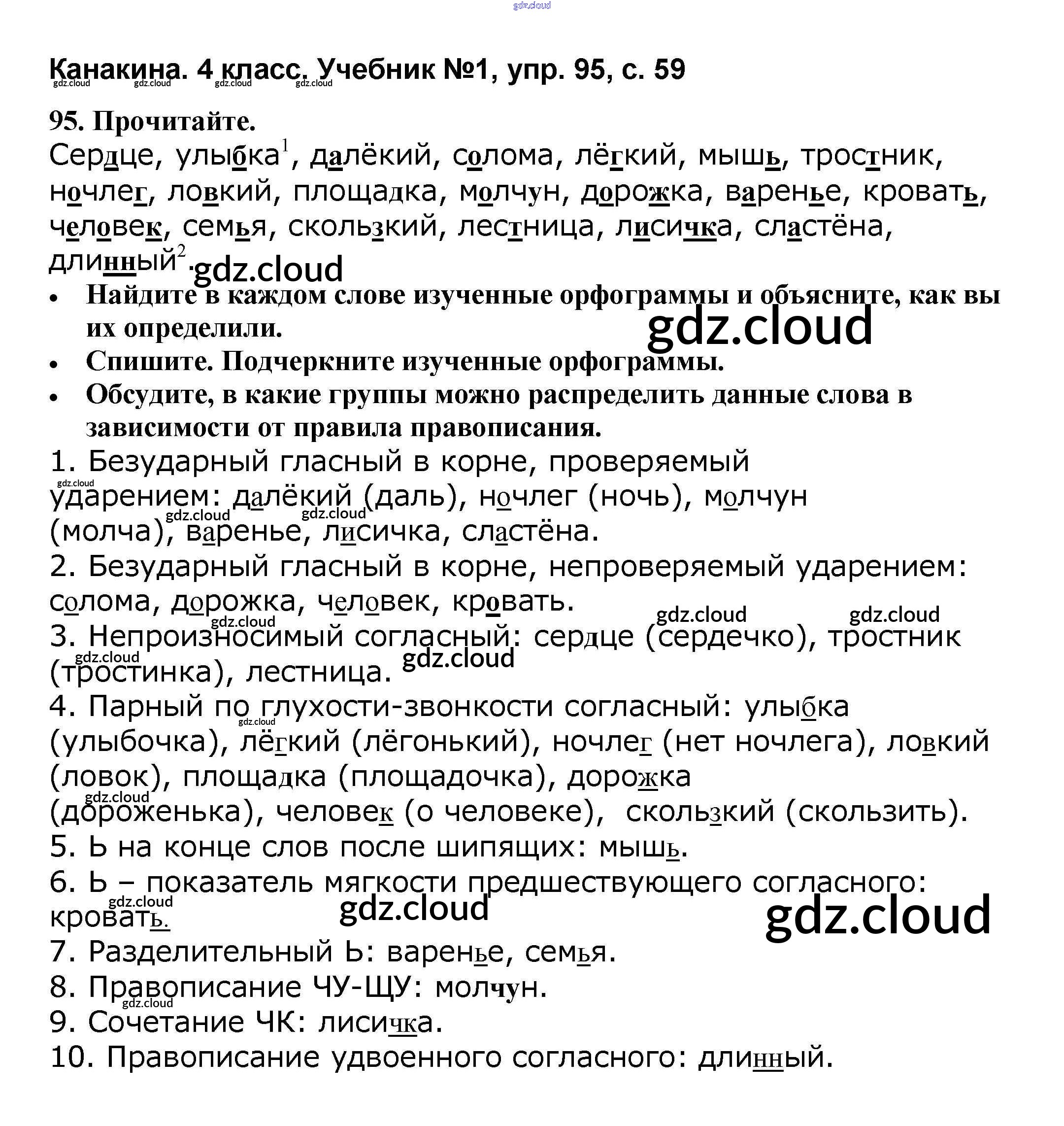 Ответ на задание 95 Учебник Русский язык за 4 (четвертый) класс Канакина, Горецкий Школа России 2015 Часть 1, 2