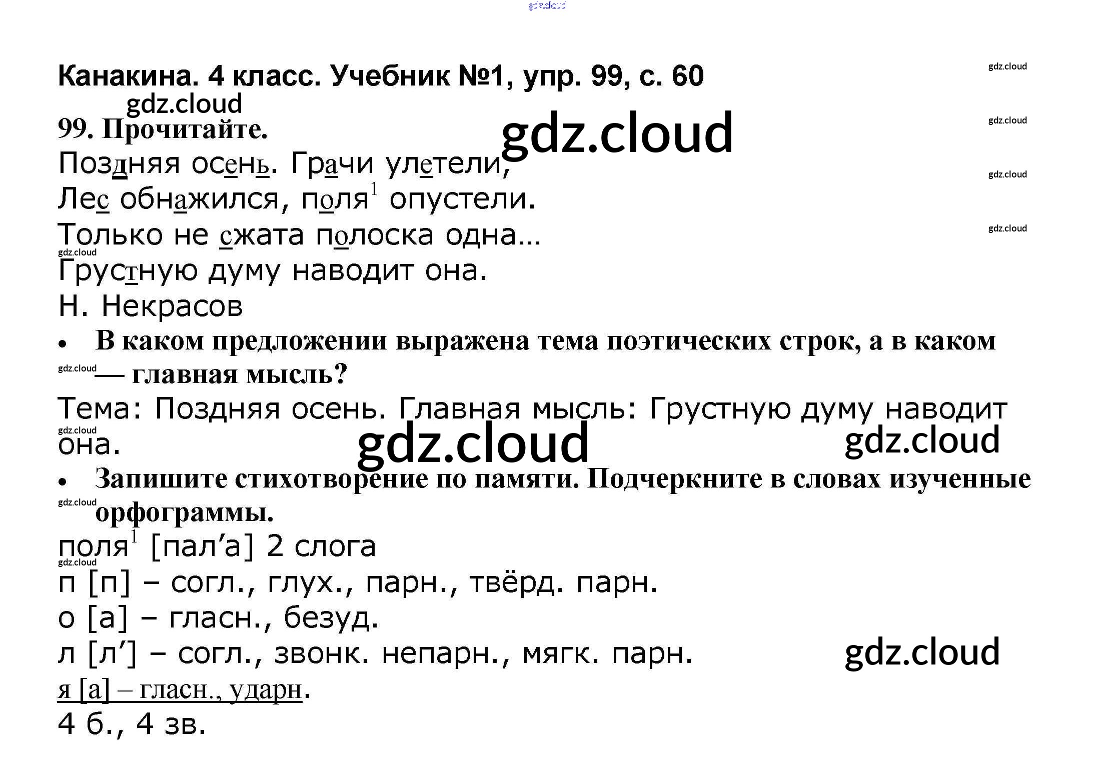 Ответ на задание 99 Учебник Русский язык за 4 (четвертый) класс Канакина, Горецкий Школа России 2015 Часть 1, 2