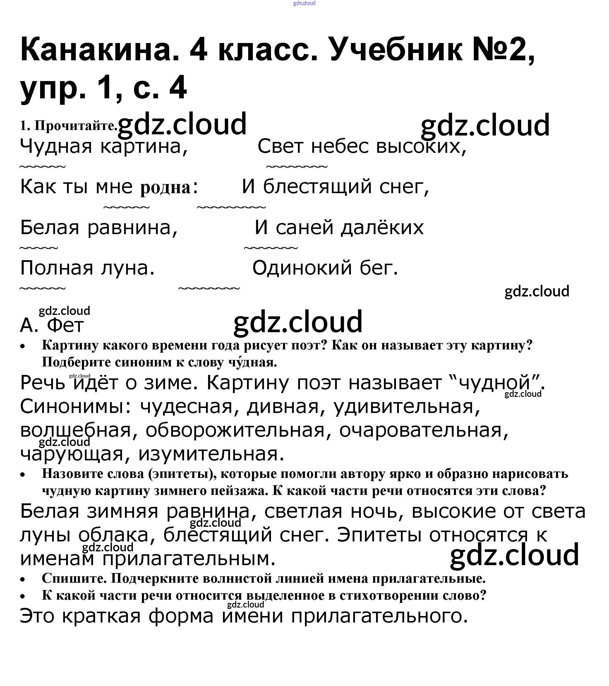 Ответ на задание 1 Учебник Русский язык за 4 (четвертый) класс Канакина, Горецкий Школа России 2015 Часть 1, 2