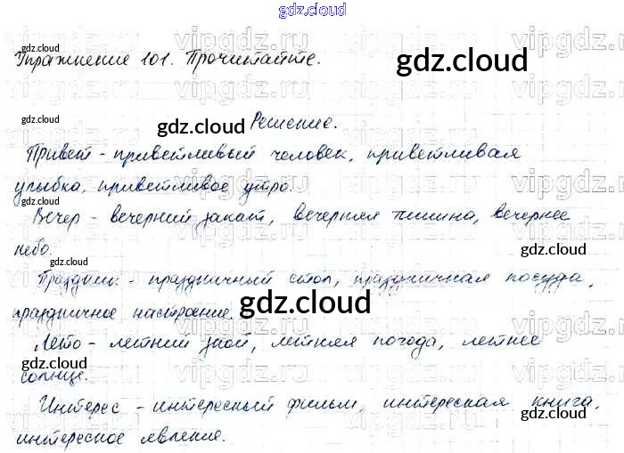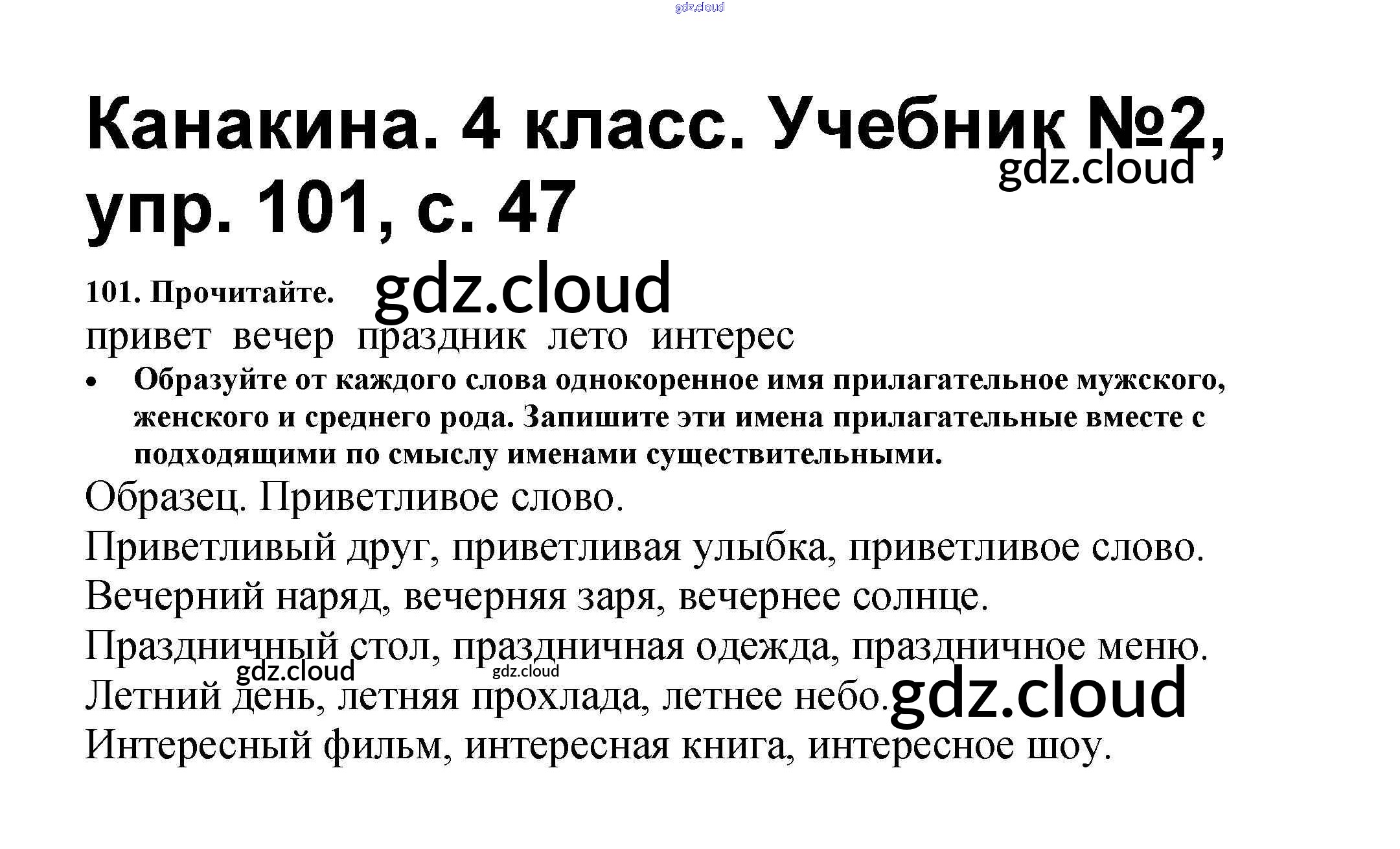 Ответ на задание 101 Учебник Русский язык за 4 (четвертый) класс Канакина, Горецкий Школа России 2015 Часть 1, 2