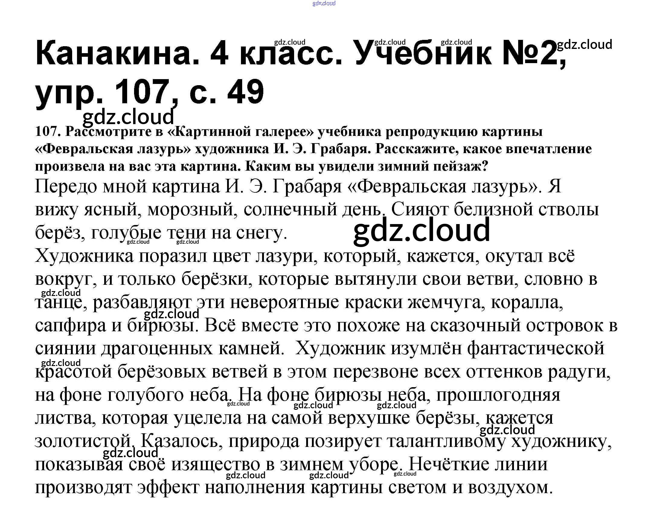 Ответ на задание 107 Учебник Русский язык за 4 (четвертый) класс Канакина, Горецкий Школа России 2015 Часть 1, 2