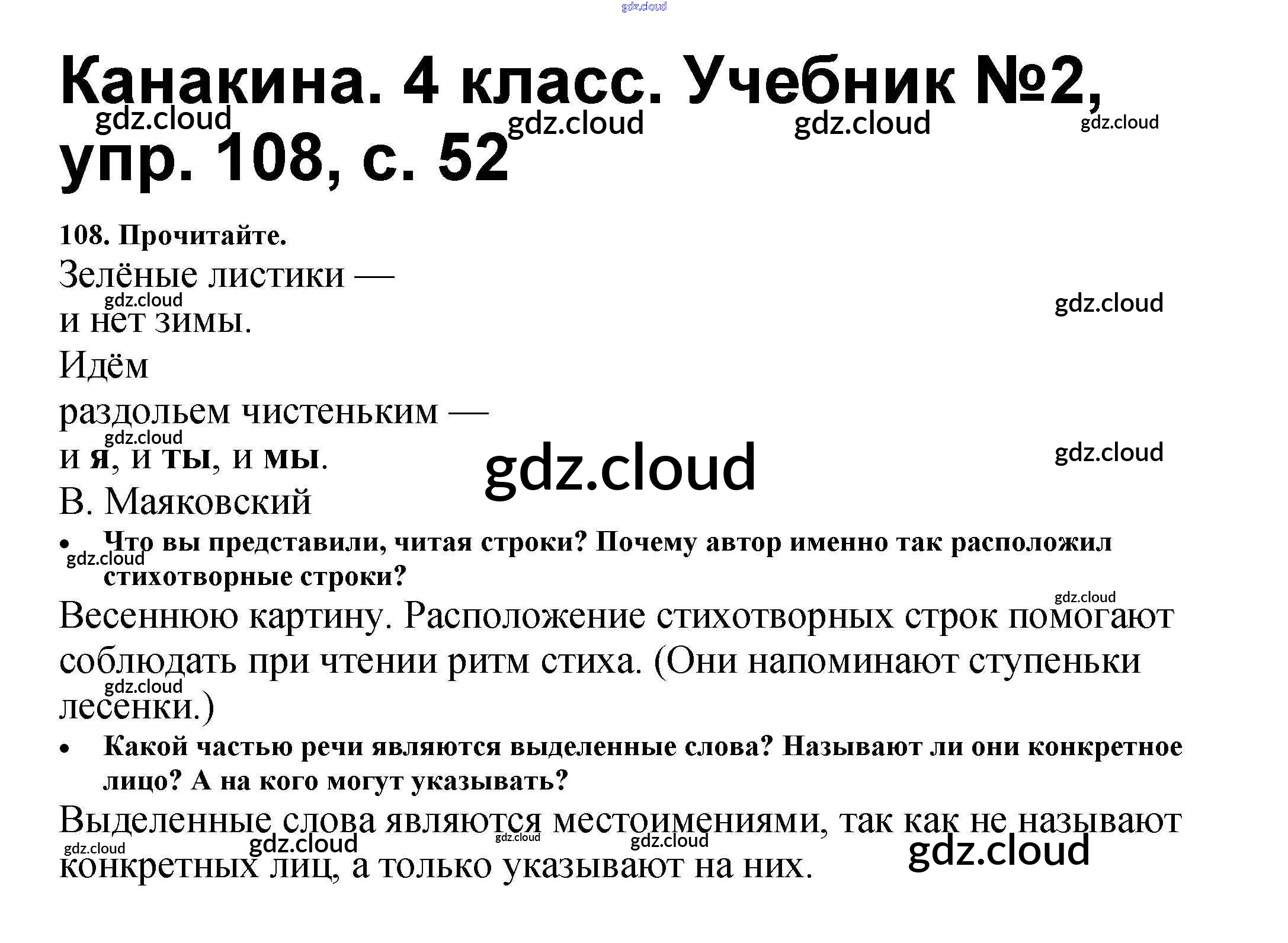 Ответ на задание 108 Учебник Русский язык за 4 (четвертый) класс Канакина, Горецкий Школа России 2015 Часть 1, 2