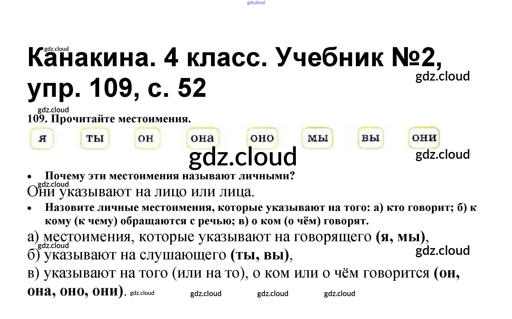 Ответ на задание 109 Учебник Русский язык за 4 (четвертый) класс Канакина, Горецкий Школа России 2015 Часть 1, 2