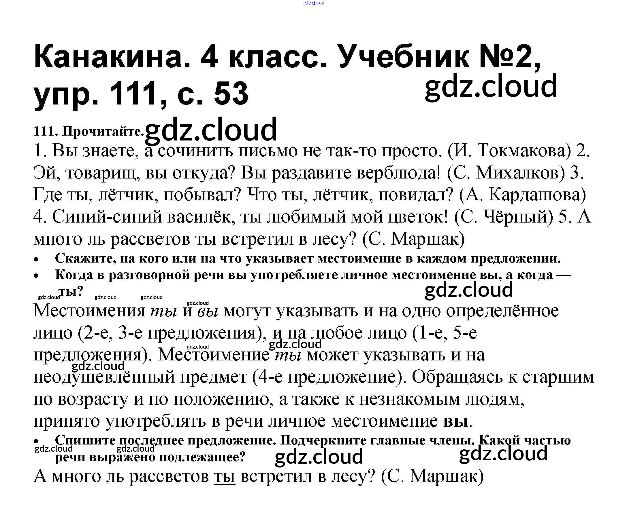 Ответ на задание 111 Учебник Русский язык за 4 (четвертый) класс Канакина, Горецкий Школа России 2015 Часть 1, 2