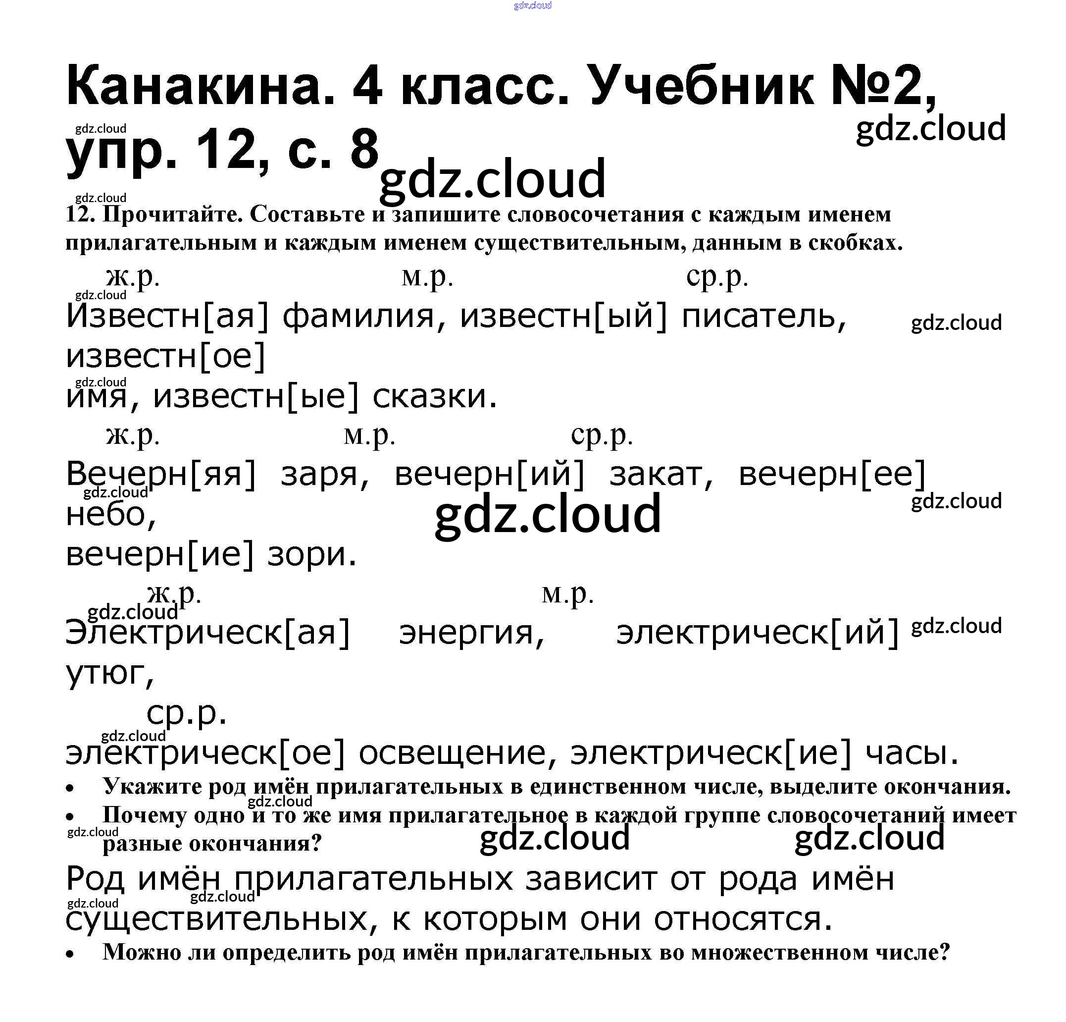 Ответ на задание 12 Учебник Русский язык за 4 (четвертый) класс Канакина, Горецкий Школа России 2015 Часть 1, 2