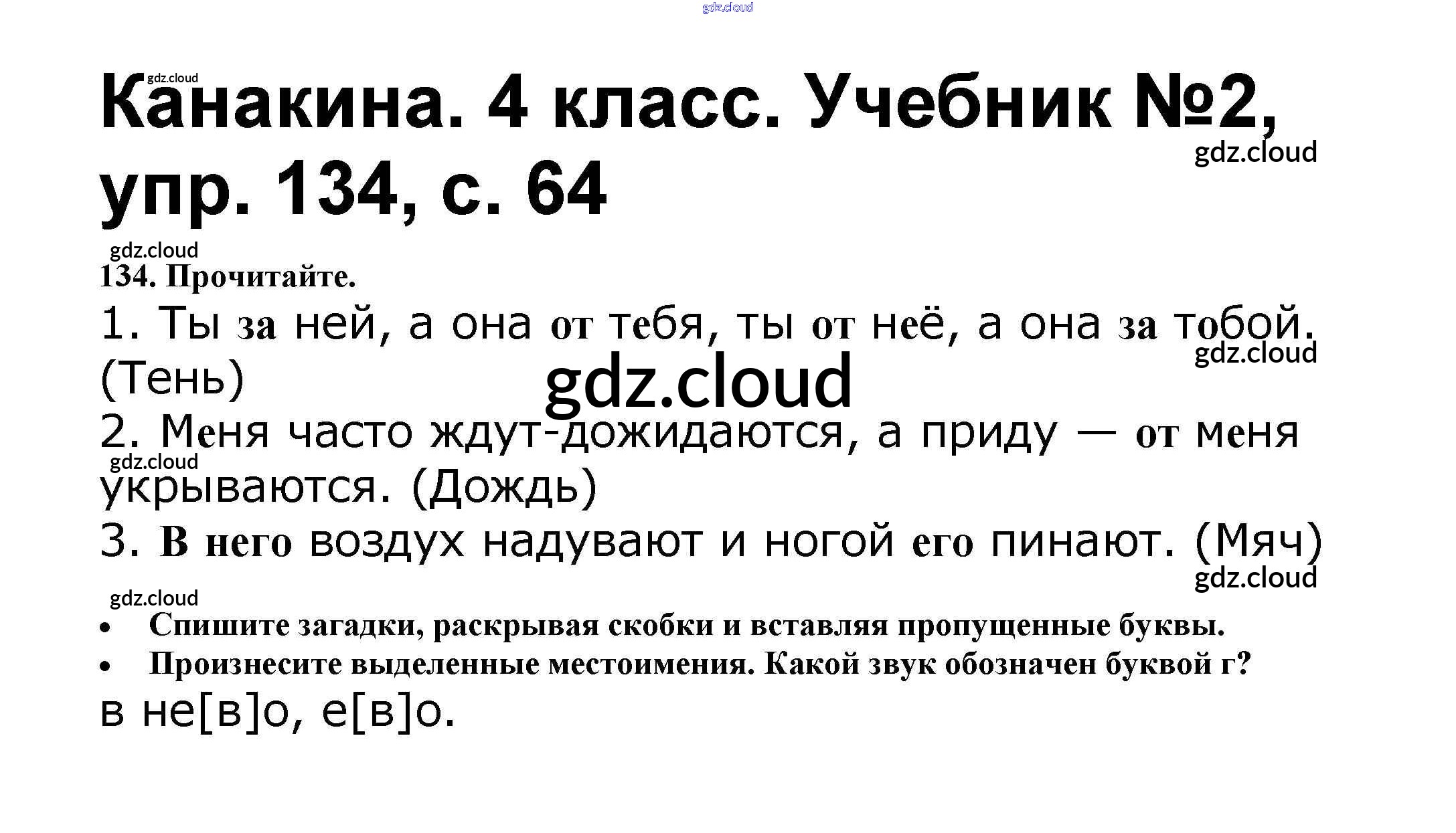 Ответ на задание 134 Учебник Русский язык за 4 (четвертый) класс Канакина, Горецкий Школа России 2015 Часть 1, 2