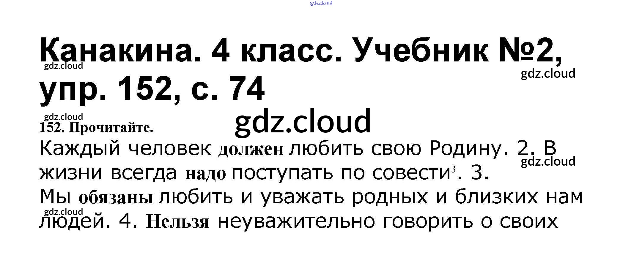 Ответ на задание 152 Учебник Русский язык за 4 (четвертый) класс Канакина, Горецкий Школа России 2015 Часть 1, 2