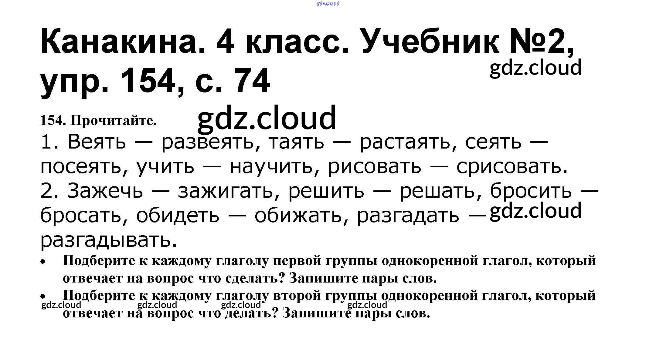 Ответ на задание 154 Учебник Русский язык за 4 (четвертый) класс Канакина, Горецкий Школа России 2015 Часть 1, 2