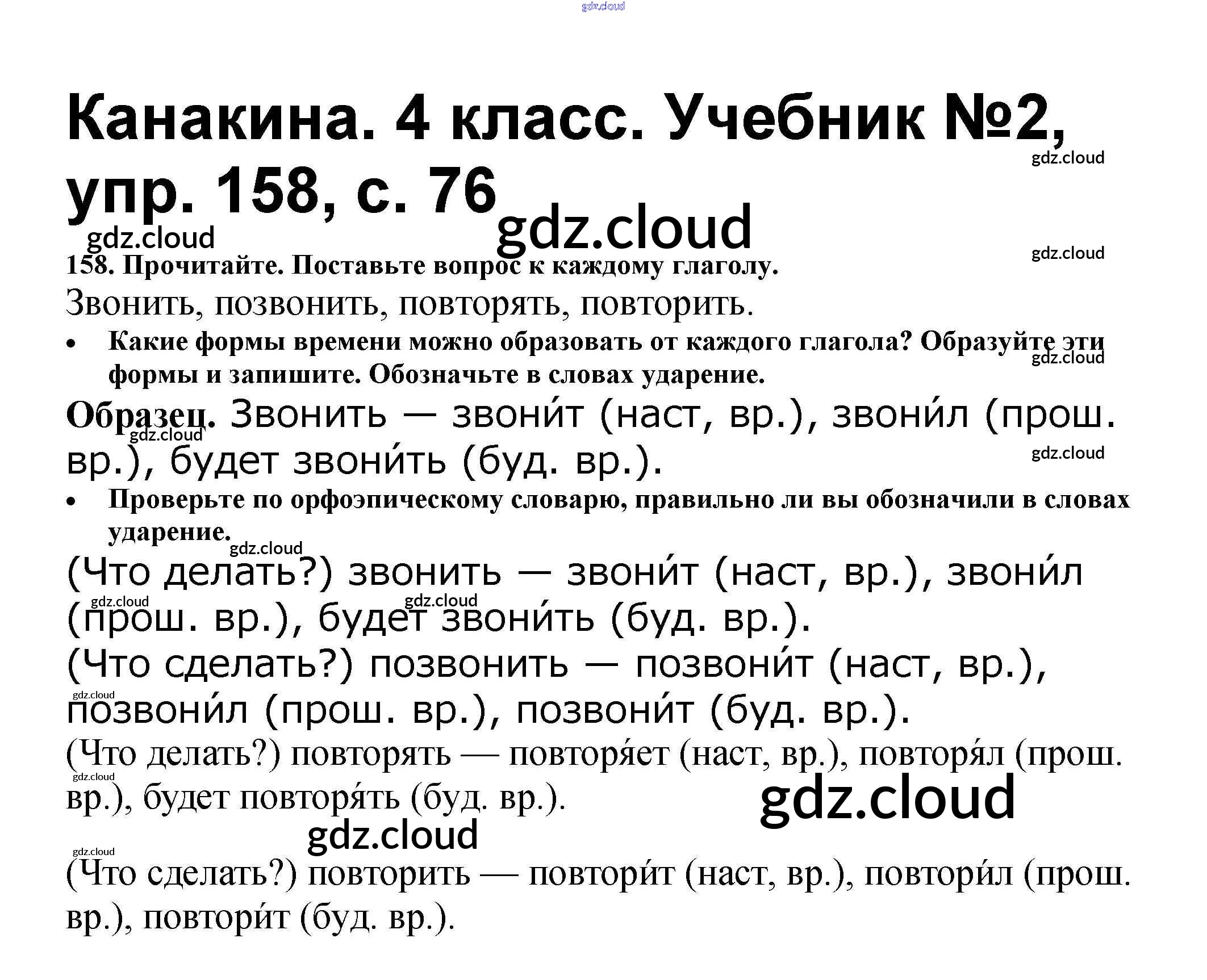 Ответ на задание 158 Учебник Русский язык за 4 (четвертый) класс Канакина, Горецкий Школа России 2015 Часть 1, 2
