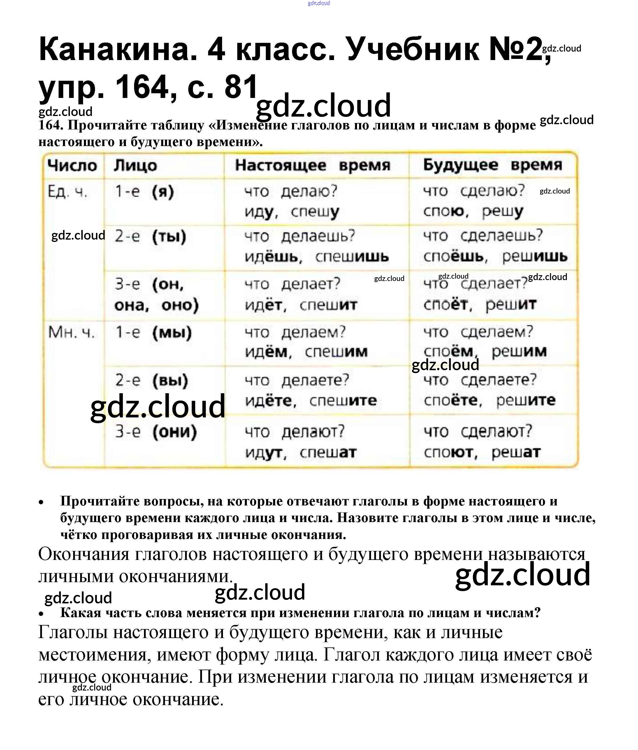 Ответ на задание 164 Учебник Русский язык за 4 (четвертый) класс Канакина, Горецкий Школа России 2015 Часть 1, 2