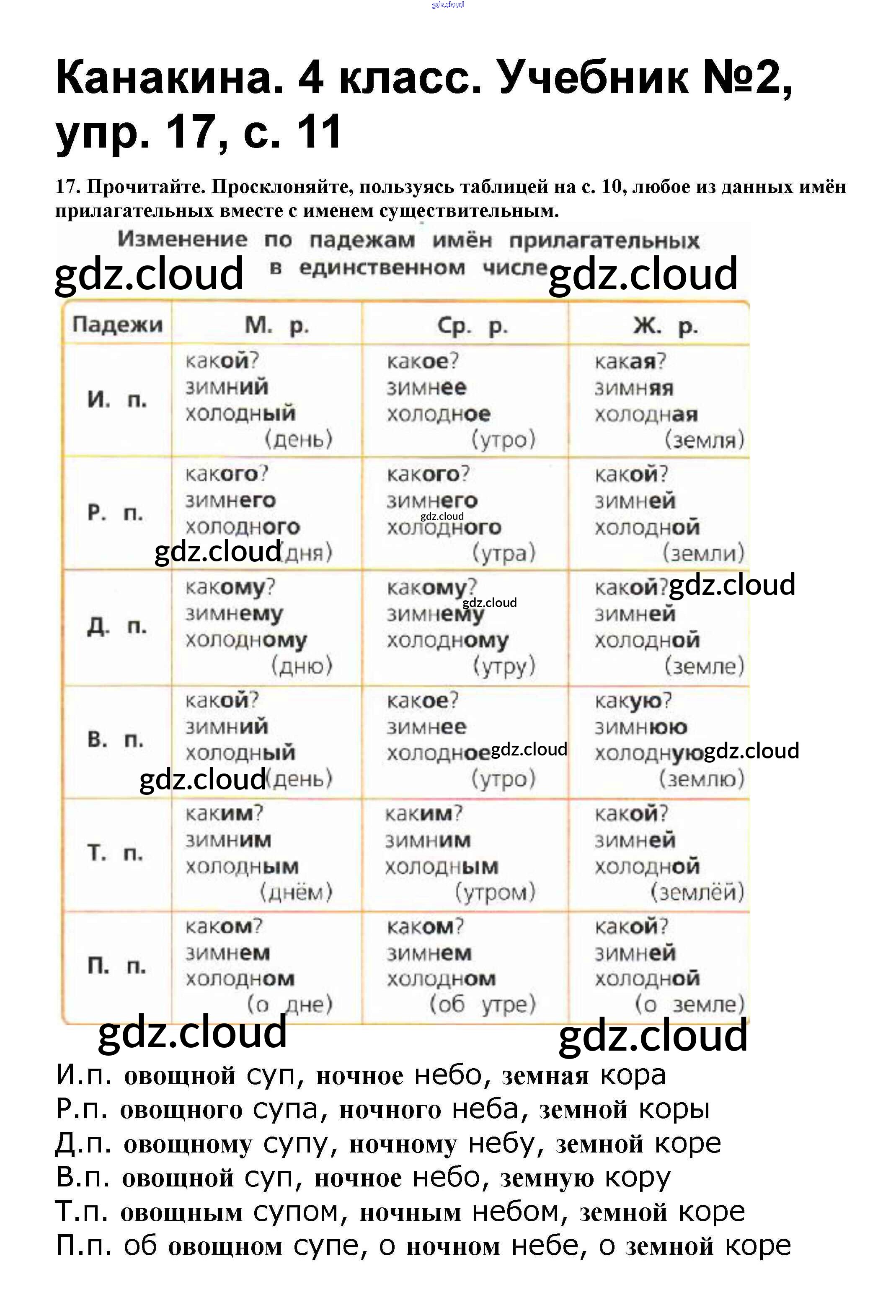 Ответ на задание 17 Учебник Русский язык за 4 (четвертый) класс Канакина, Горецкий Школа России 2015 Часть 1, 2
