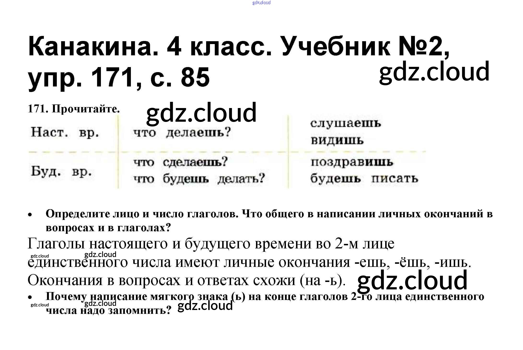 Ответ на задание 171 Учебник Русский язык за 4 (четвертый) класс Канакина, Горецкий Школа России 2015 Часть 1, 2