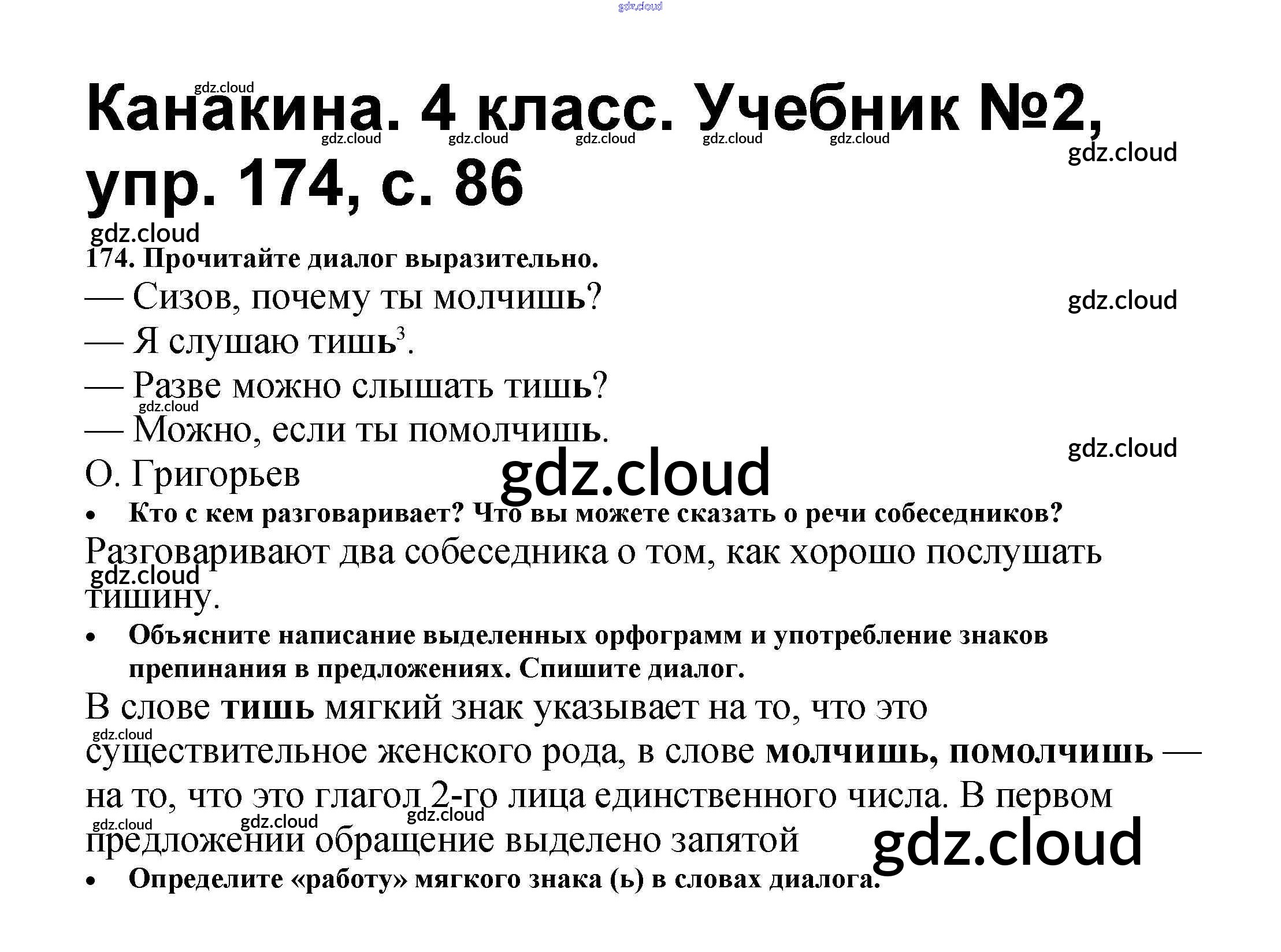 Ответ на задание 174 Учебник Русский язык за 4 (четвертый) класс Канакина, Горецкий Школа России 2015 Часть 1, 2