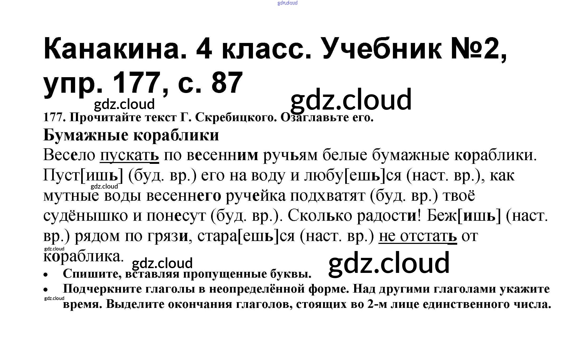 Ответ на задание 177 Учебник Русский язык за 4 (четвертый) класс Канакина, Горецкий Школа России 2015 Часть 1, 2