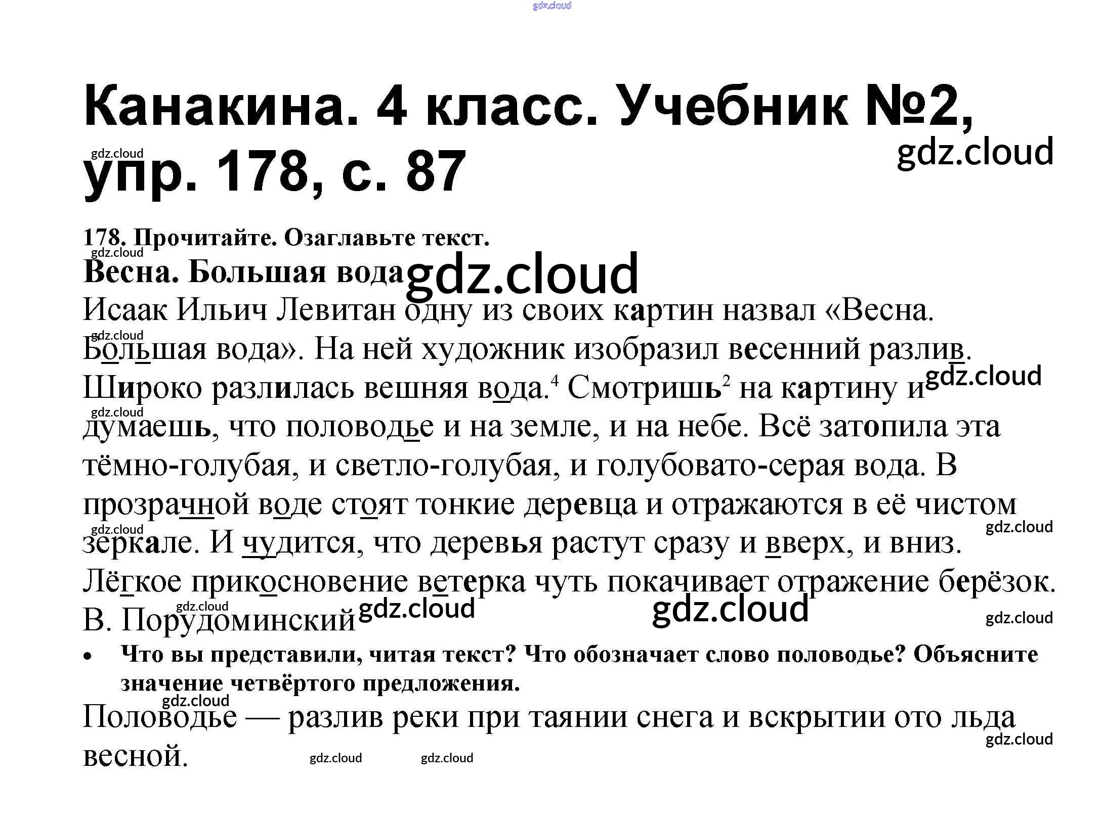 Ответ на задание 178 Учебник Русский язык за 4 (четвертый) класс Канакина, Горецкий Школа России 2015 Часть 1, 2