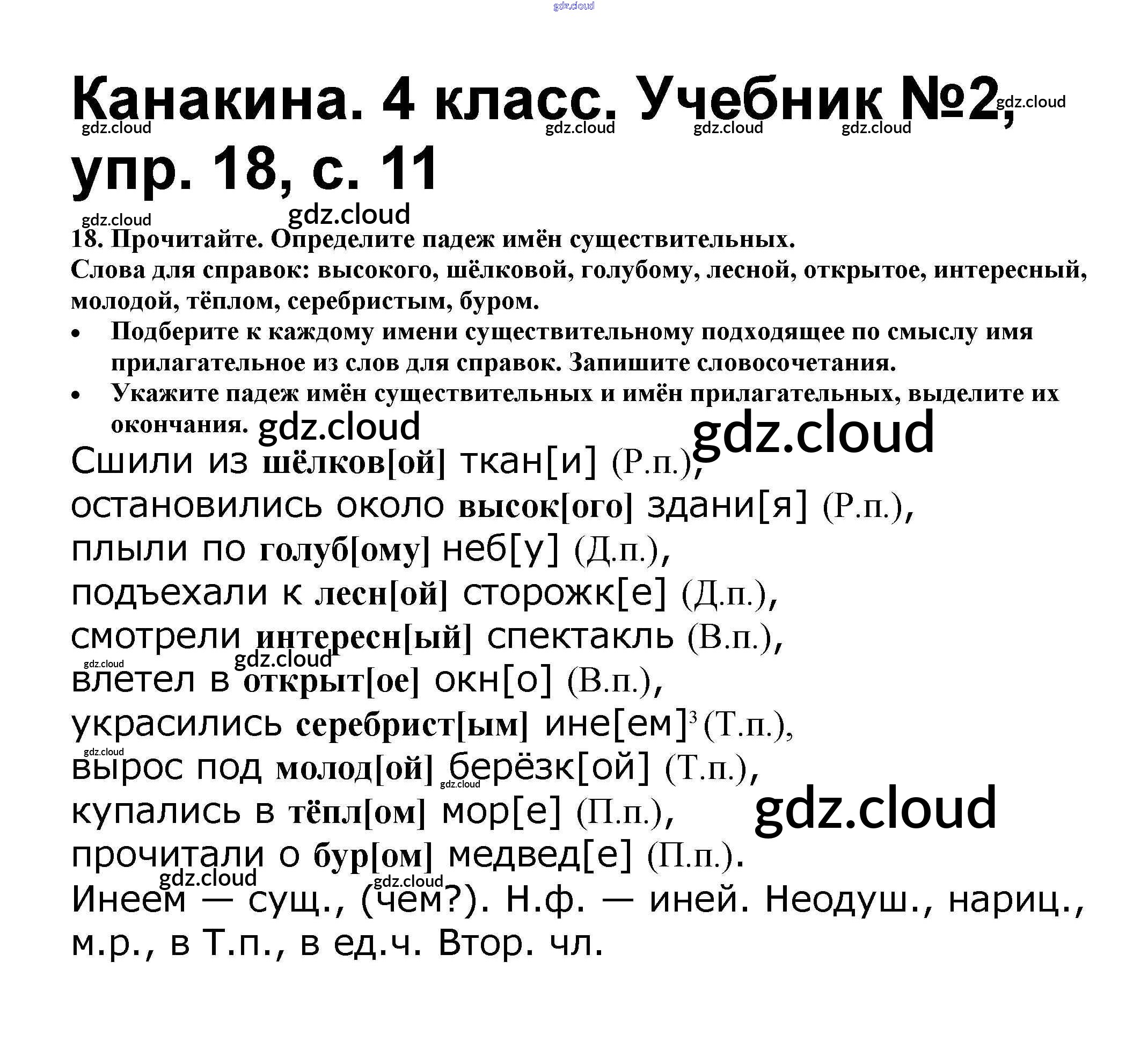 Ответ на задание 18 Учебник Русский язык за 4 (четвертый) класс Канакина, Горецкий Школа России 2015 Часть 1, 2