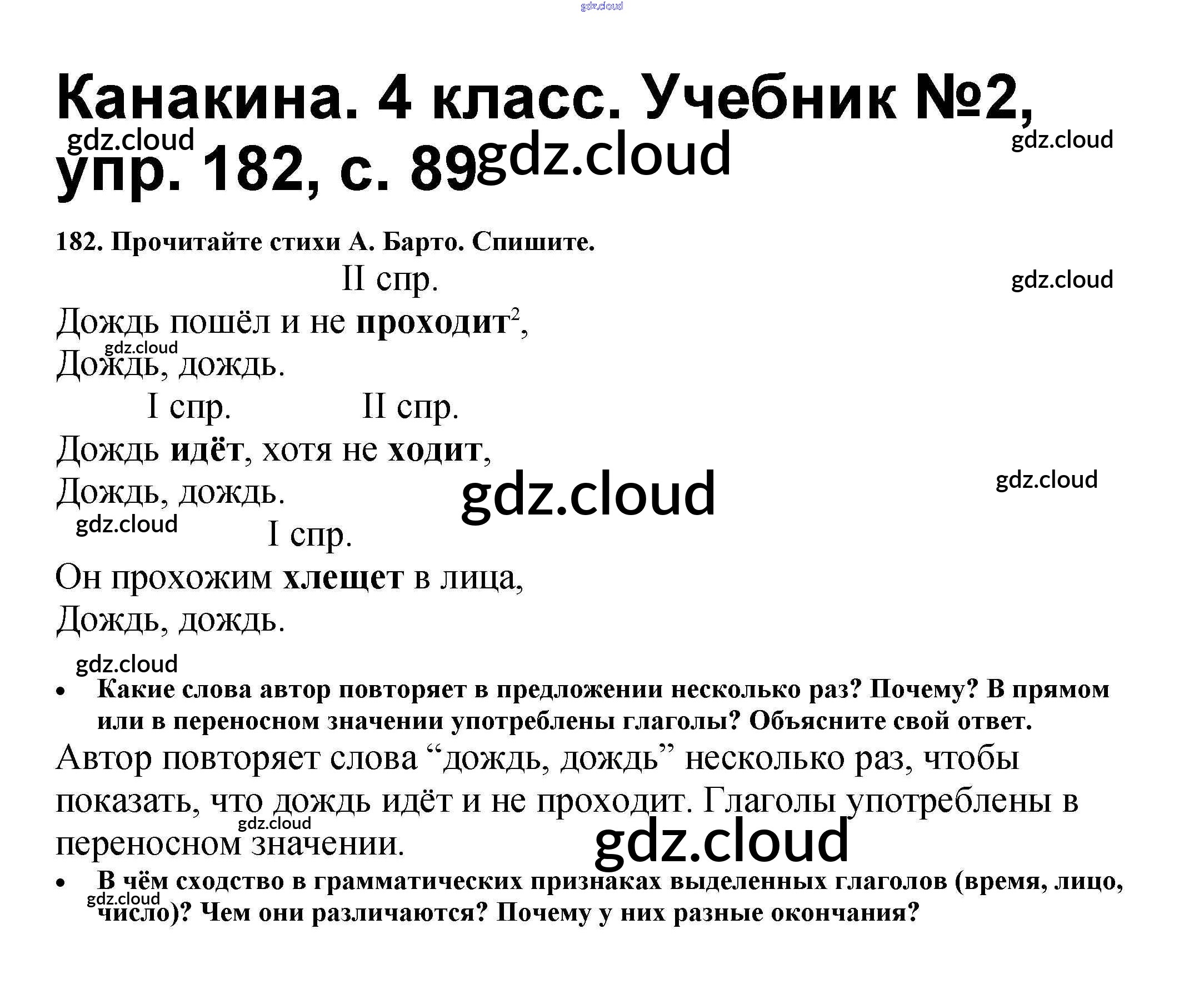 Ответ на задание 182 Учебник Русский язык за 4 (четвертый) класс Канакина, Горецкий Школа России 2015 Часть 1, 2