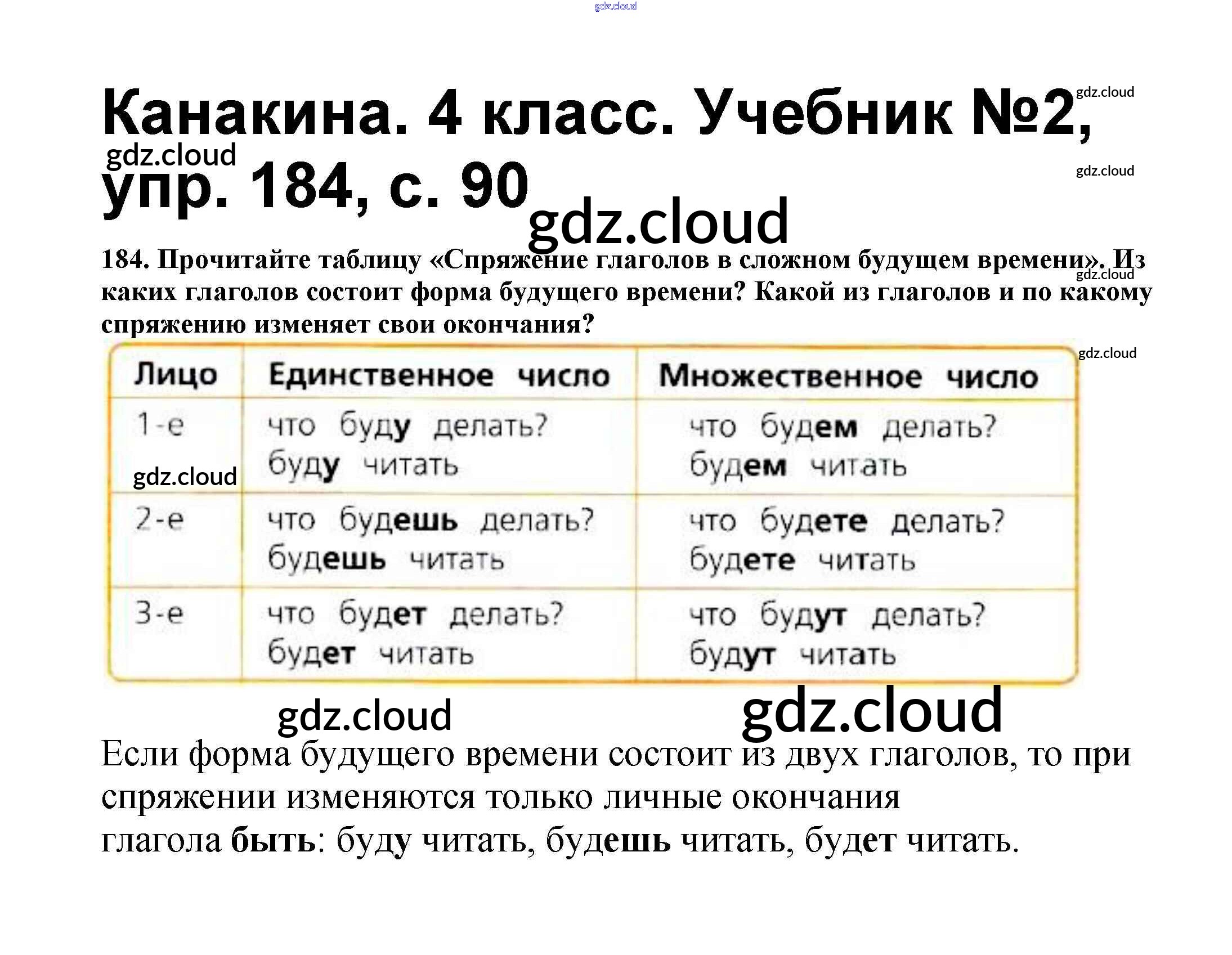 Ответ на задание 184 Учебник Русский язык за 4 (четвертый) класс Канакина, Горецкий Школа России 2015 Часть 1, 2