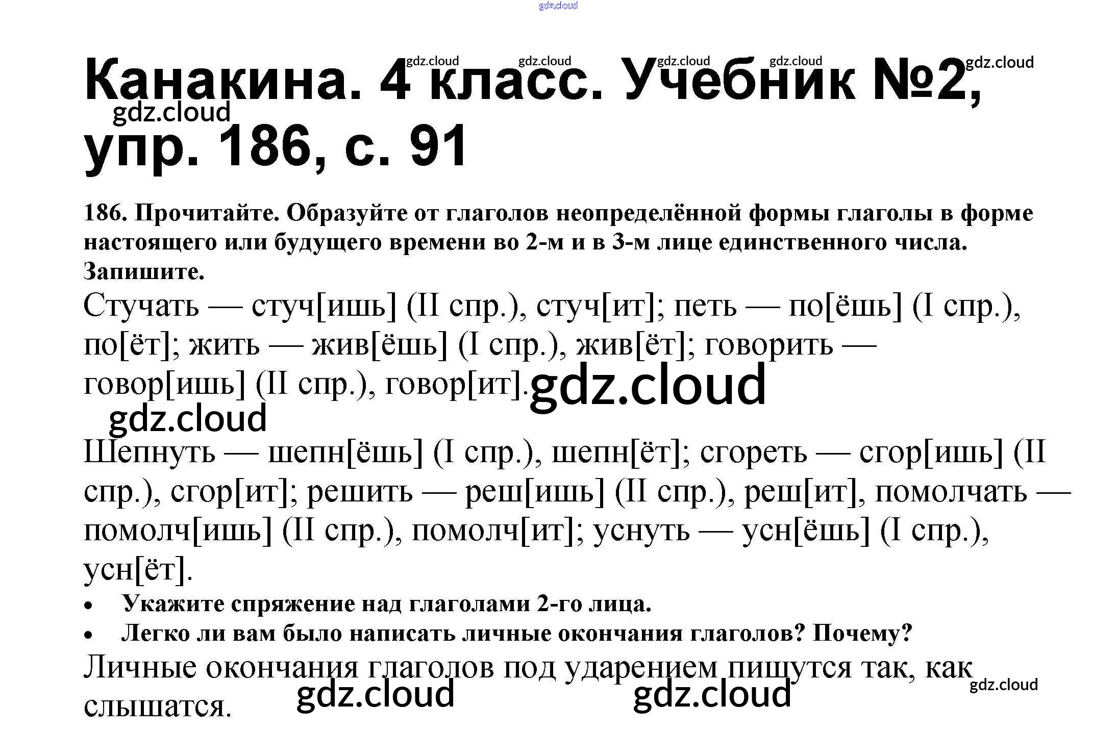 Ответ на задание 186 Учебник Русский язык за 4 (четвертый) класс Канакина, Горецкий Школа России 2015 Часть 1, 2