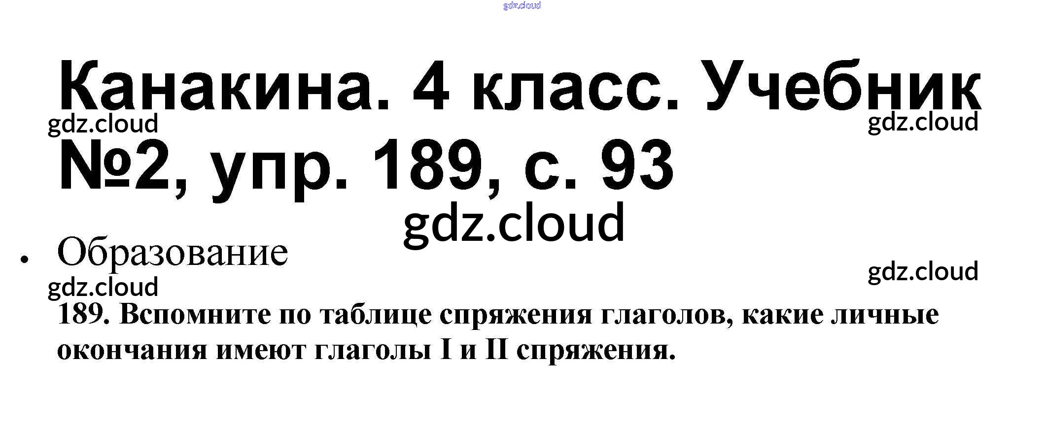 Ответ на задание 189 Учебник Русский язык за 4 (четвертый) класс Канакина, Горецкий Школа России 2015 Часть 1, 2