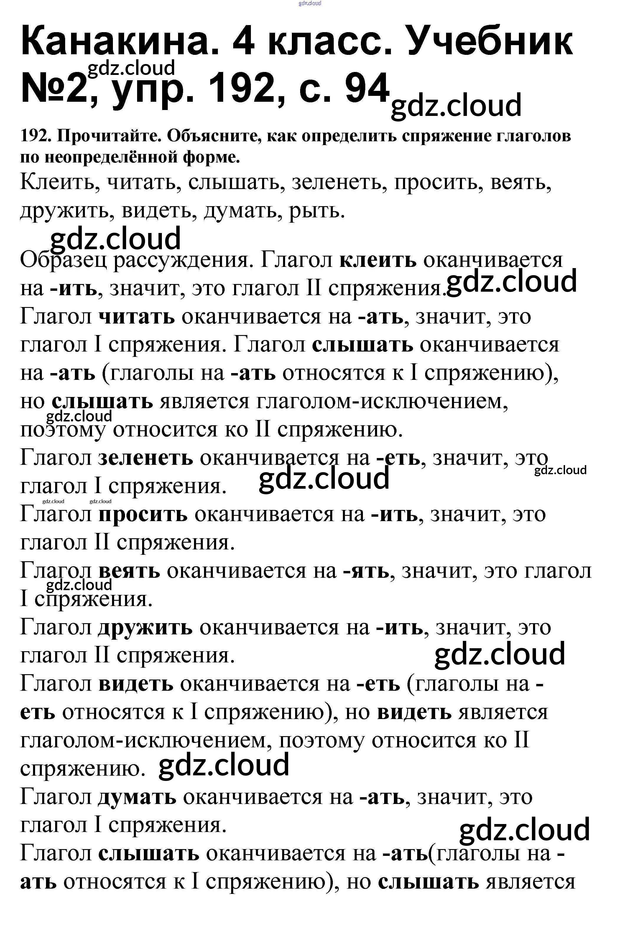 Ответ на задание 192 Учебник Русский язык за 4 (четвертый) класс Канакина, Горецкий Школа России 2015 Часть 1, 2