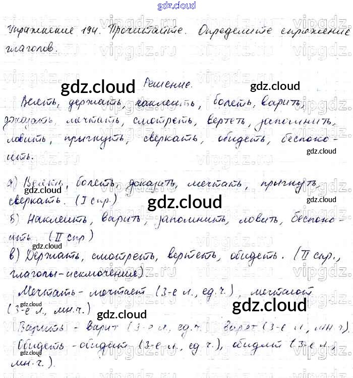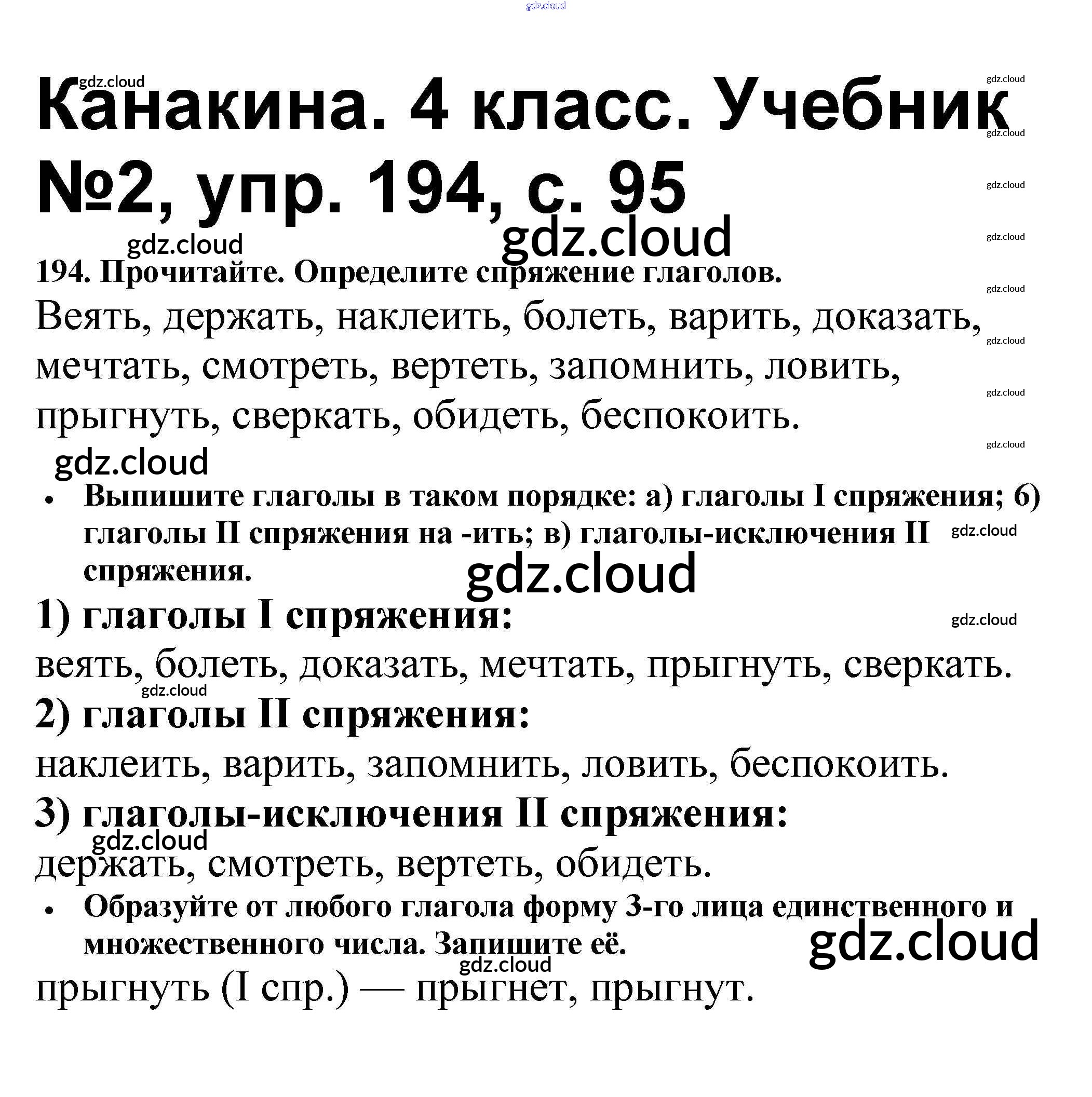 Ответ на задание 194 Учебник Русский язык за 4 (четвертый) класс Канакина, Горецкий Школа России 2015 Часть 1, 2