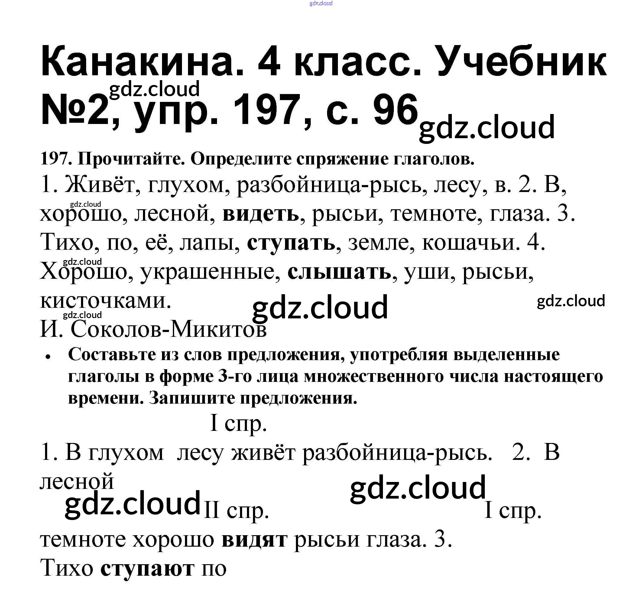 Ответ на задание 197 Учебник Русский язык за 4 (четвертый) класс Канакина, Горецкий Школа России 2015 Часть 1, 2