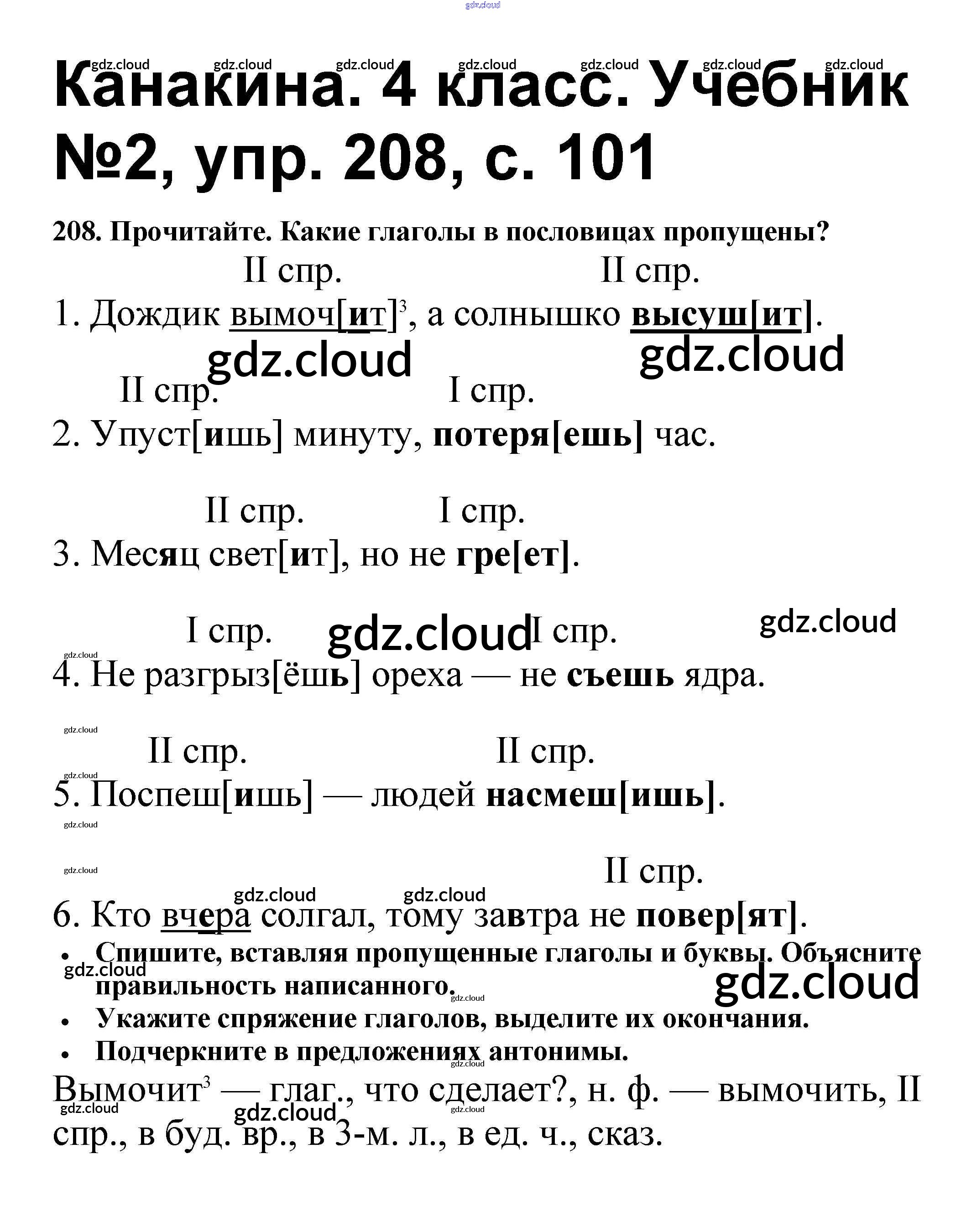Ответ на задание 208 Учебник Русский язык за 4 (четвертый) класс Канакина, Горецкий Школа России 2015 Часть 1, 2