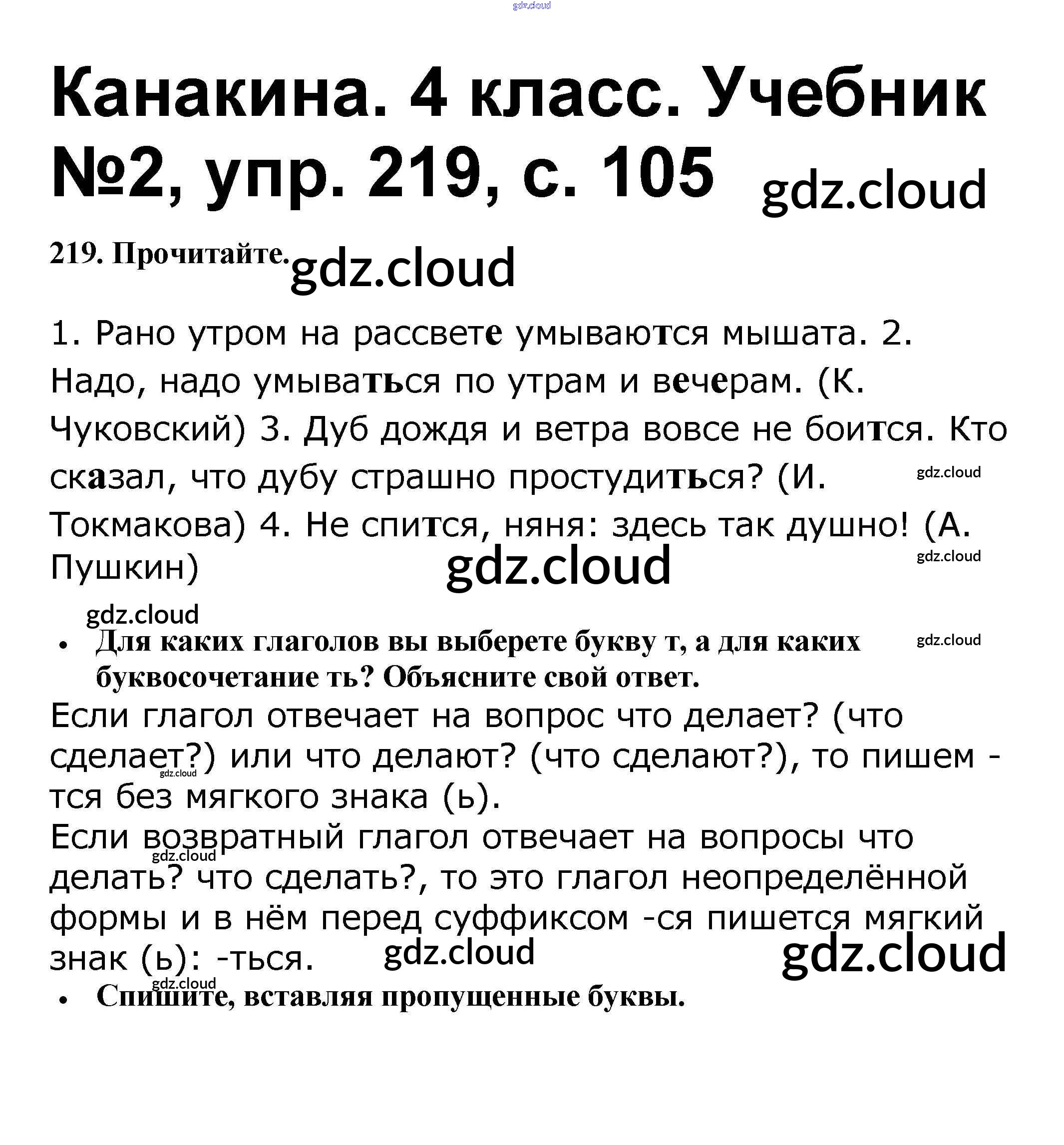 Ответ на задание 219 Учебник Русский язык за 4 (четвертый) класс Канакина, Горецкий Школа России 2015 Часть 1, 2