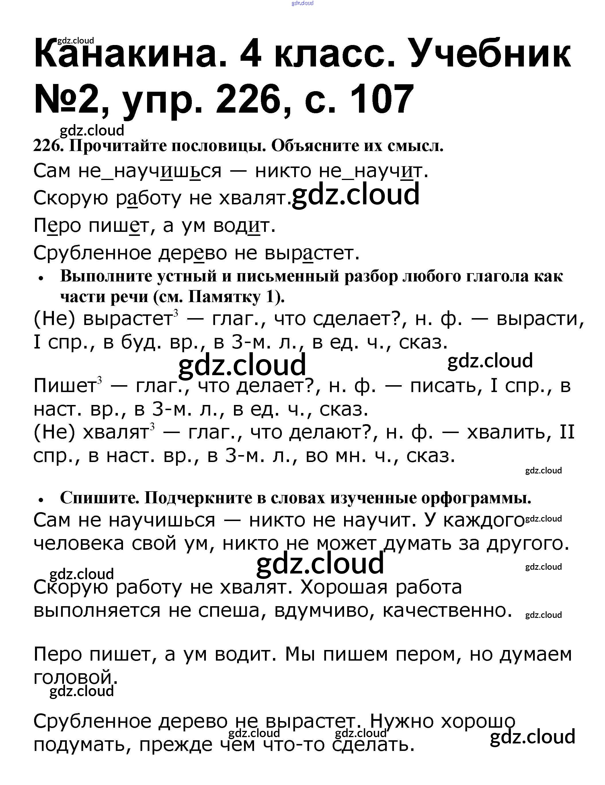 Ответ на задание 226 Учебник Русский язык за 4 (четвертый) класс Канакина, Горецкий Школа России 2015 Часть 1, 2