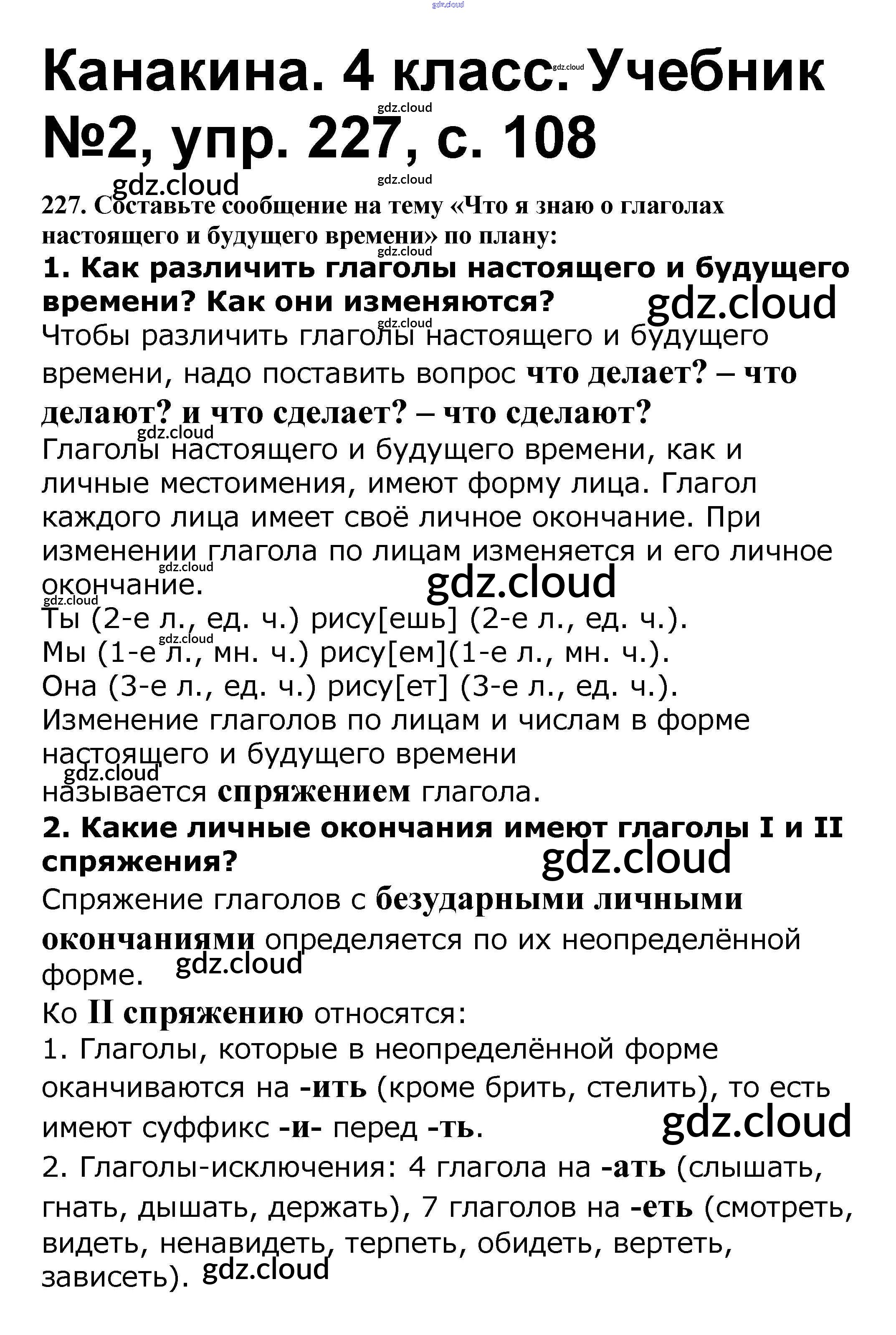 Ответ на задание 227 Учебник Русский язык за 4 (четвертый) класс Канакина, Горецкий Школа России 2015 Часть 1, 2