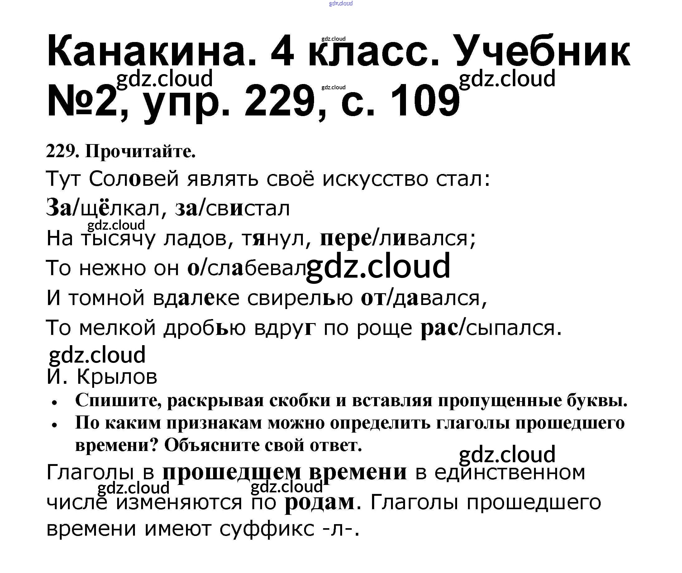 Ответ на задание 229 Учебник Русский язык за 4 (четвертый) класс Канакина, Горецкий Школа России 2015 Часть 1, 2