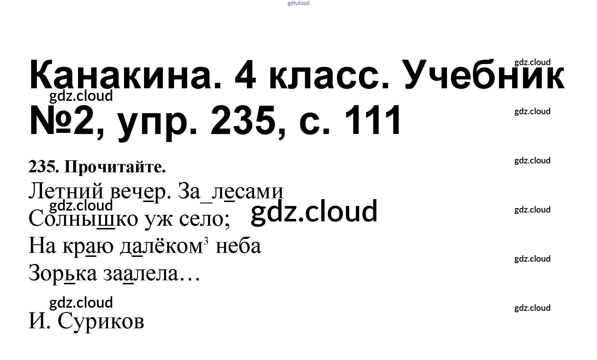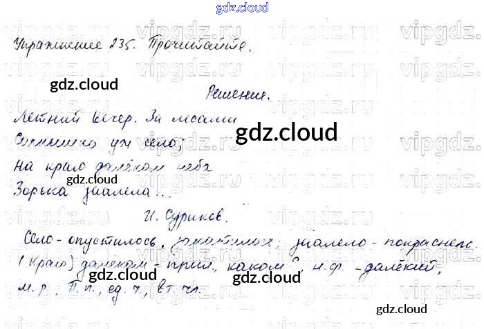 Ответ на задание 235 Учебник Русский язык за 4 (четвертый) класс Канакина, Горецкий Школа России 2015 Часть 1, 2