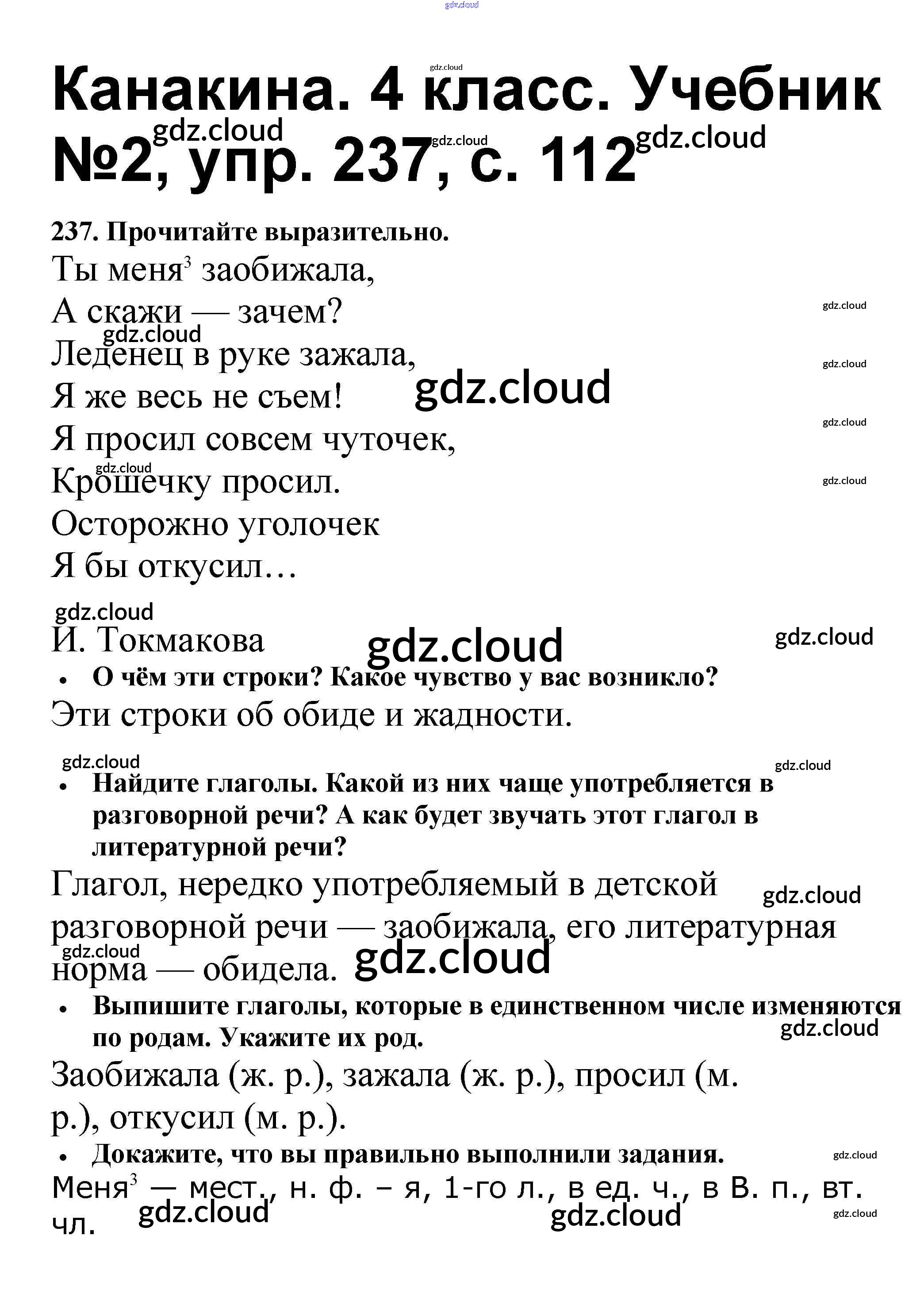 Ответ на задание 237 Учебник Русский язык за 4 (четвертый) класс Канакина, Горецкий Школа России 2015 Часть 1, 2