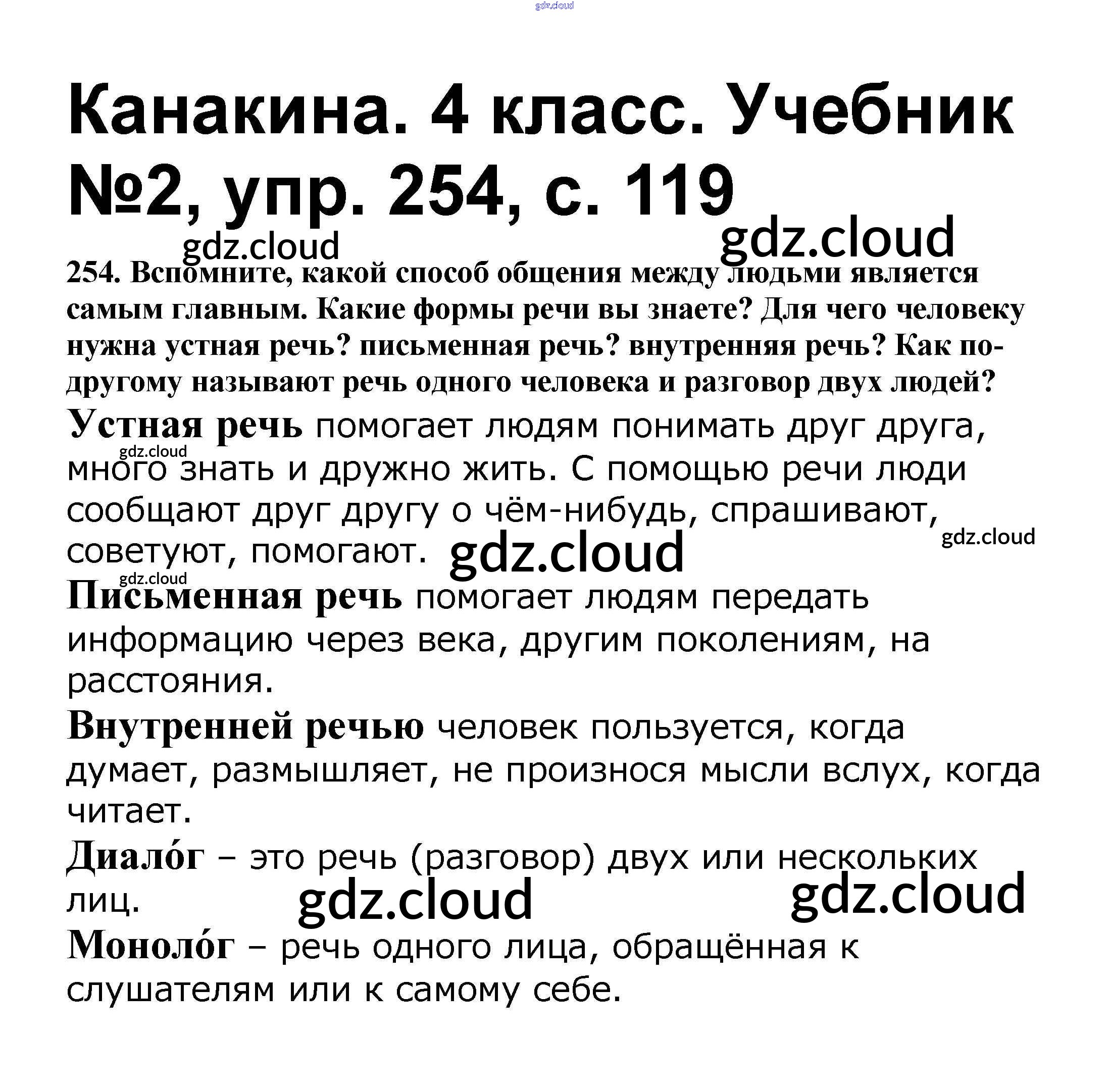 Ответ на задание 254 Учебник Русский язык за 4 (четвертый) класс Канакина, Горецкий Школа России 2015 Часть 1, 2