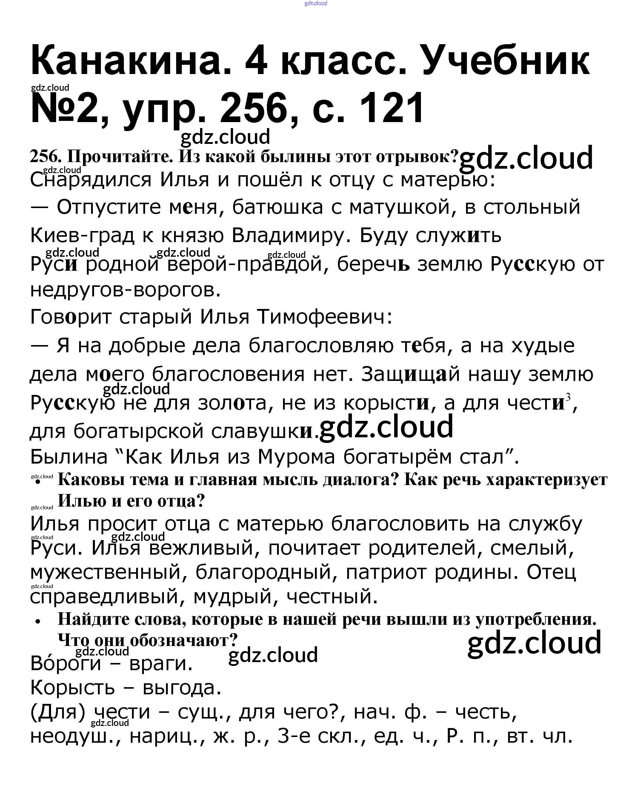 Ответ на задание 256 Учебник Русский язык за 4 (четвертый) класс Канакина, Горецкий Школа России 2015 Часть 1, 2