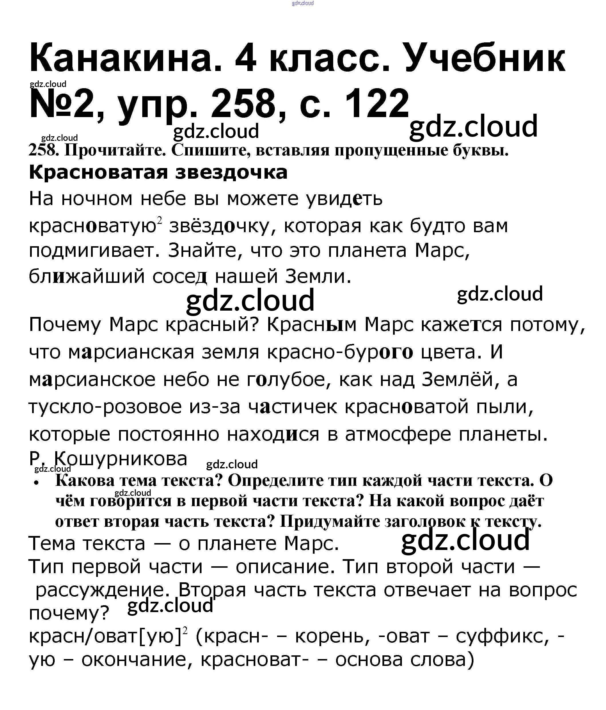 Ответ на задание 258 Учебник Русский язык за 4 (четвертый) класс Канакина, Горецкий Школа России 2015 Часть 1, 2