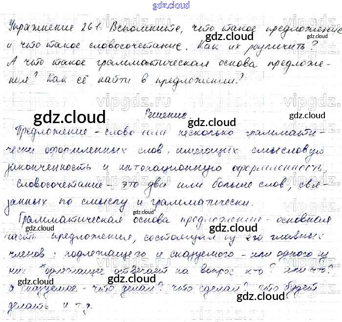 Ответ на задание 261 Учебник Русский язык за 4 (четвертый) класс Канакина, Горецкий Школа России 2015 Часть 1, 2