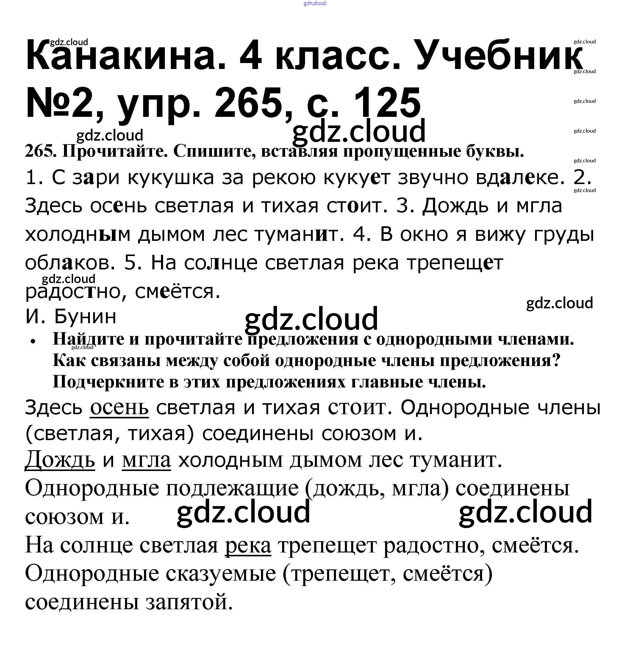 Ответ на задание 265 Учебник Русский язык за 4 (четвертый) класс Канакина, Горецкий Школа России 2015 Часть 1, 2