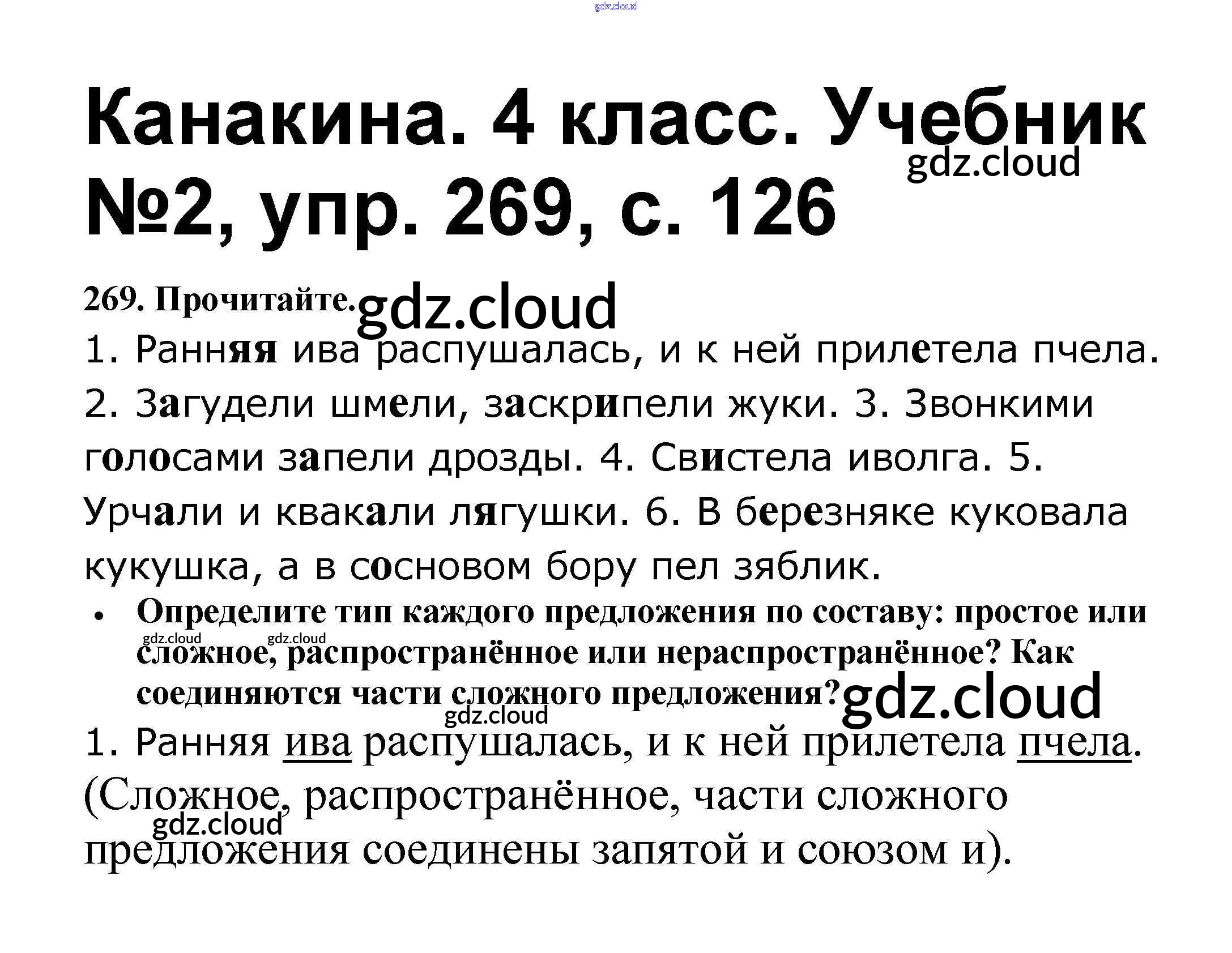 Ответ на задание 269 Учебник Русский язык за 4 (четвертый) класс Канакина, Горецкий Школа России 2015 Часть 1, 2